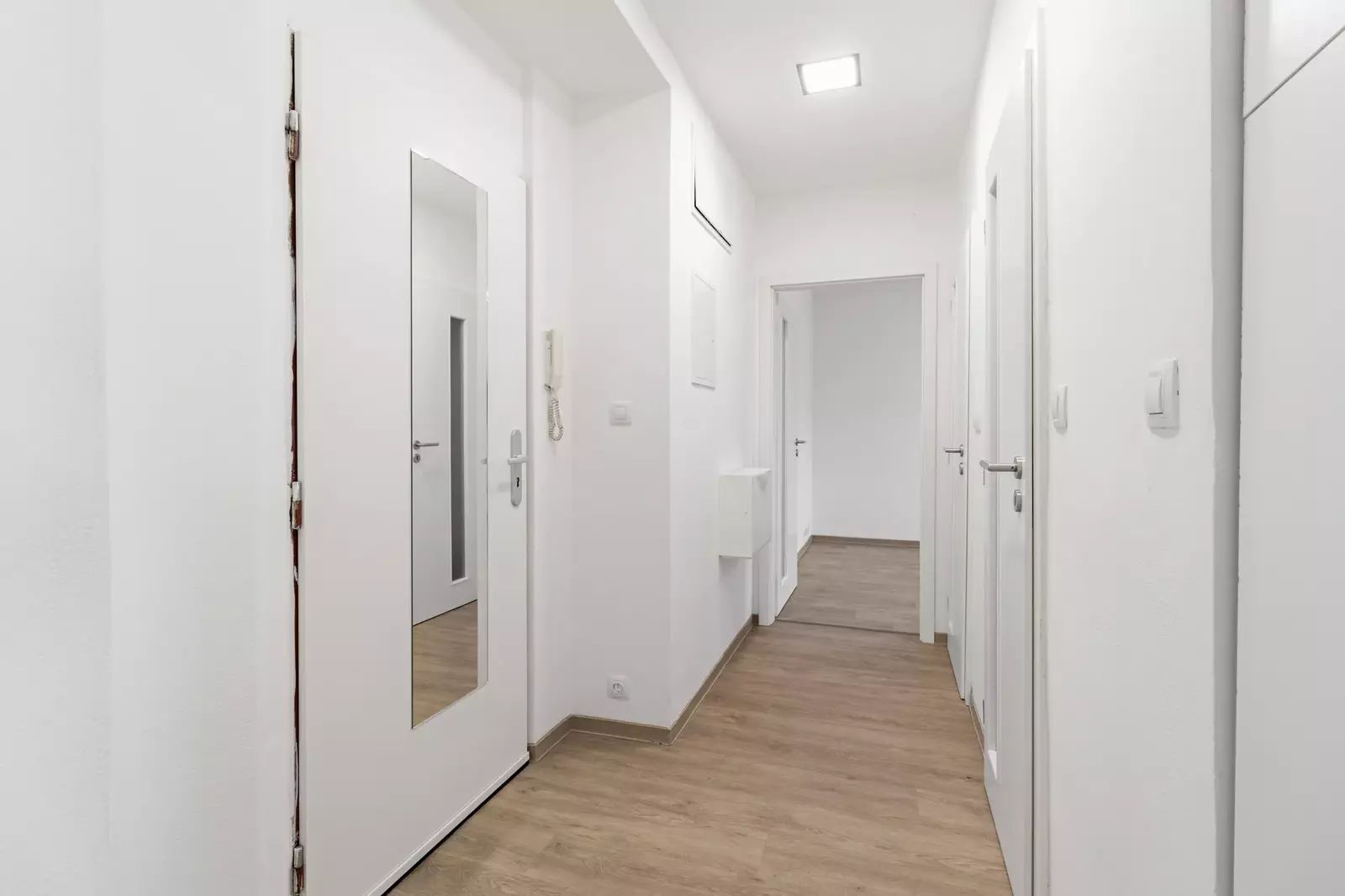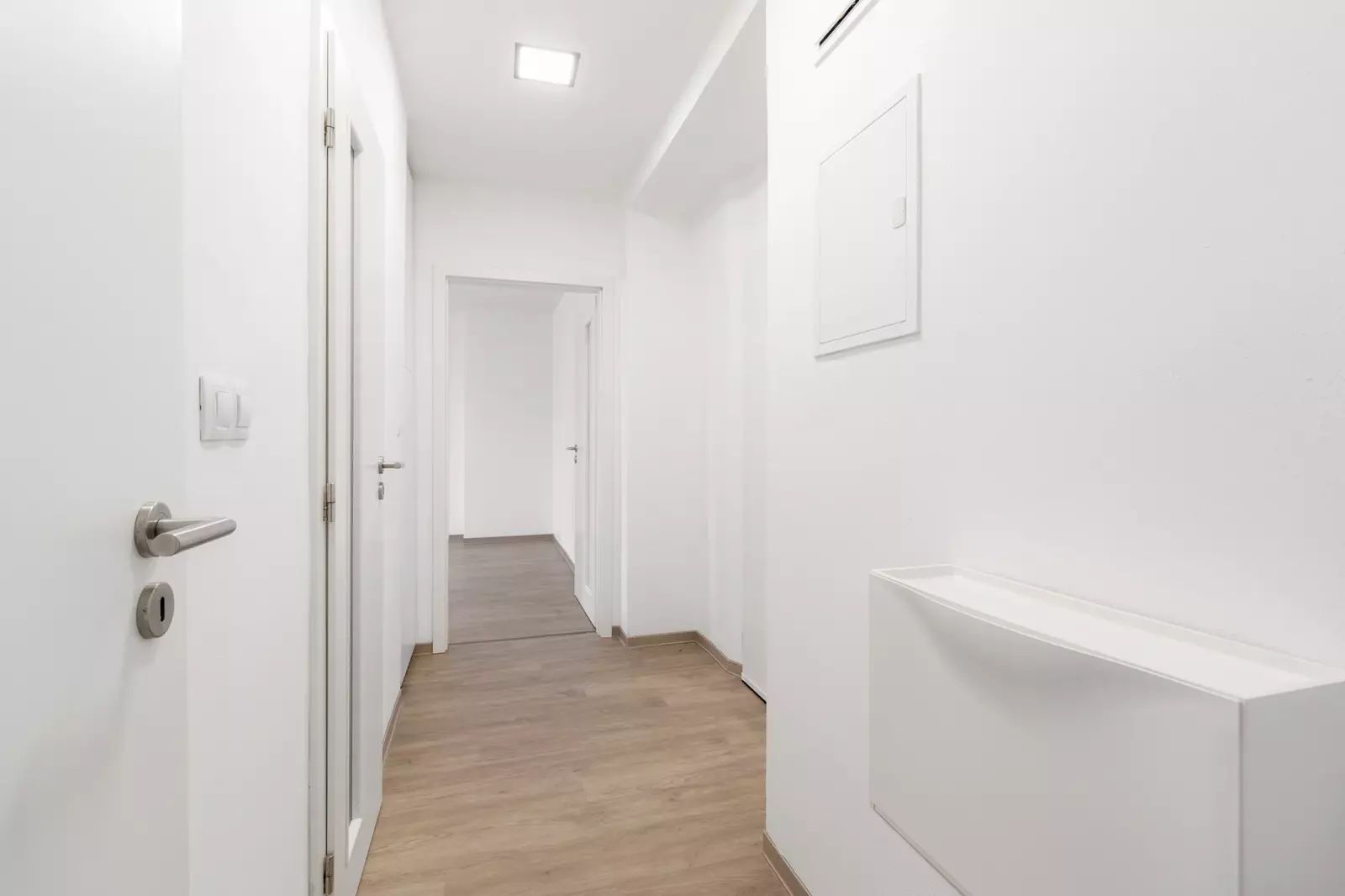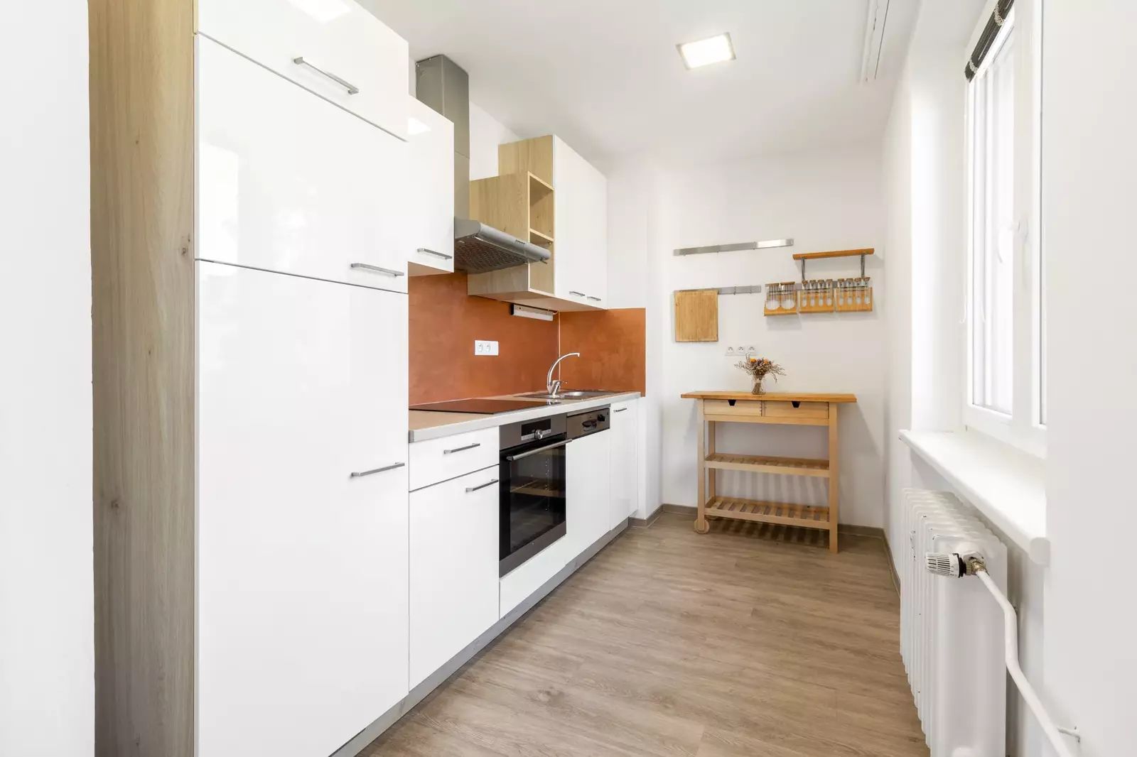 Samotný byt prošel rovněž rozsáhlou a kvalitní rekonstrukcí. Nové jsou veškeré rozvody (elektřina, voda), podlahy, moderní koupelna, samostatné WC a kuchyňská linka. Díky důrazu na detaily působí interiér velmi útulně a elegantně – stačí se jen nastěhovat.