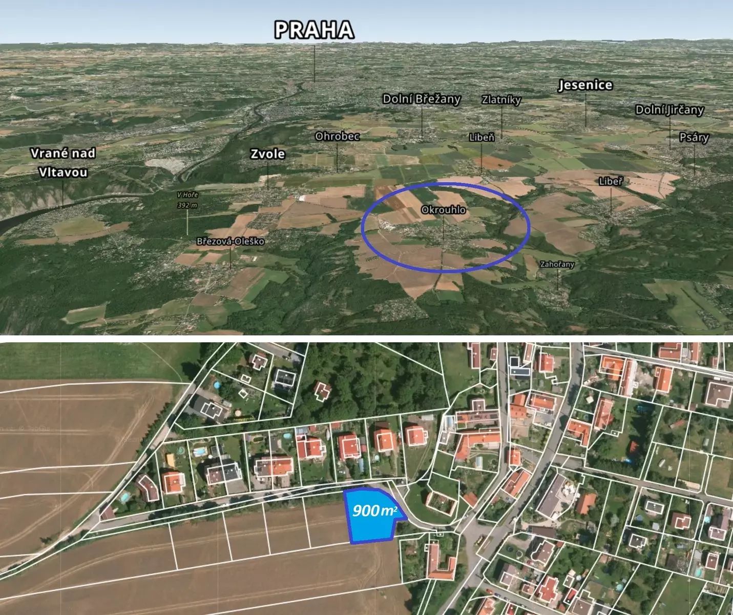 Nabízíme ke koupi rovinatý stavební pozemek ideálního tvaru bezprostředně navazující na stávající zástavbu. Plocha pozemku je 900 m², v případě zájmu je možné přikoupit i sousední pozemek o rozloze 173 m² (příplatek 100tisíc Kč). Pozemek se nachází v obci Okrouhlo Praha západ mezi Dolními Břežany a Jílovým u Prahy.