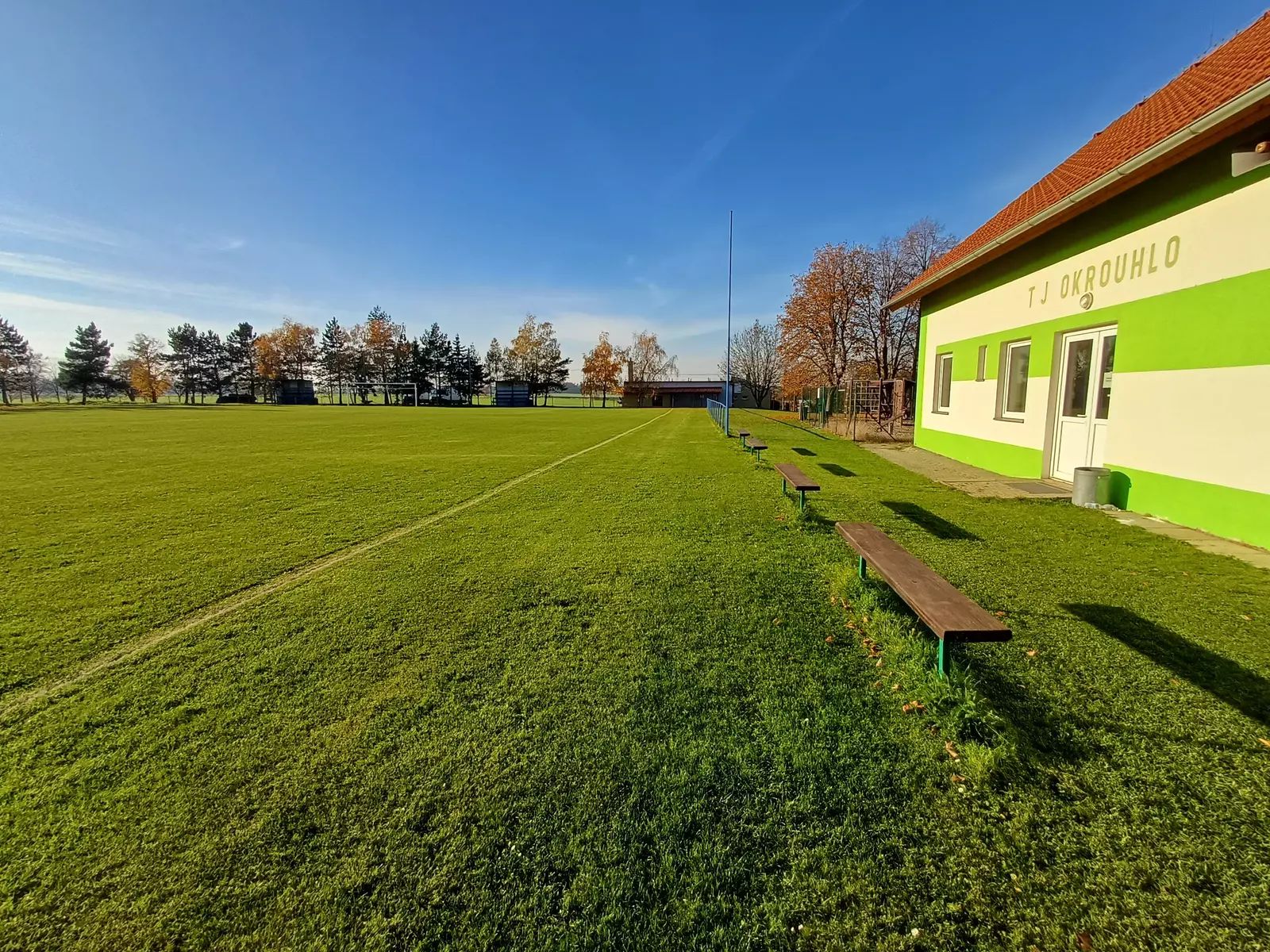 V obci Okrouhlo je obecní úřad, mateřská školka, dětské hřiště a několik malých místních firem (mj. na zemní a stavební práce ). Autobusová zastávka MHD PID směr metro Kačerov i směr vlakové nádraží Vrané nad Vltavou je od pozemku vzdálena asi 200 m. Autem je Praha dosažitelná za cca 20 minut. Další občanskou vybavenost nabízejí sousední obec Zvole, dále Jílové u Prahy a Dolní Břežany.