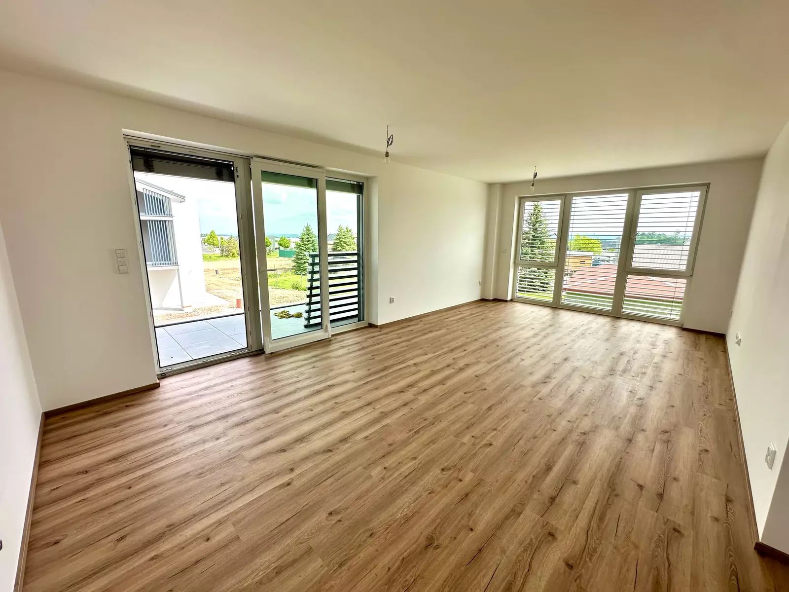 Dvě ložnice s prostorem pro vestavěné skříně, maximum úložného prostoru, stejně jako v obývacím pokoji.