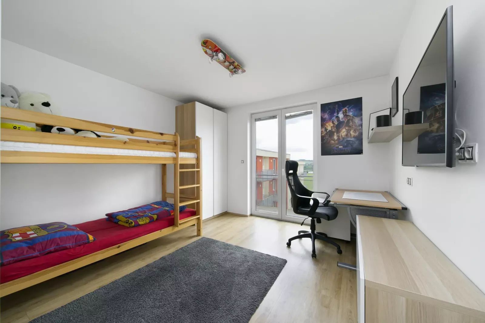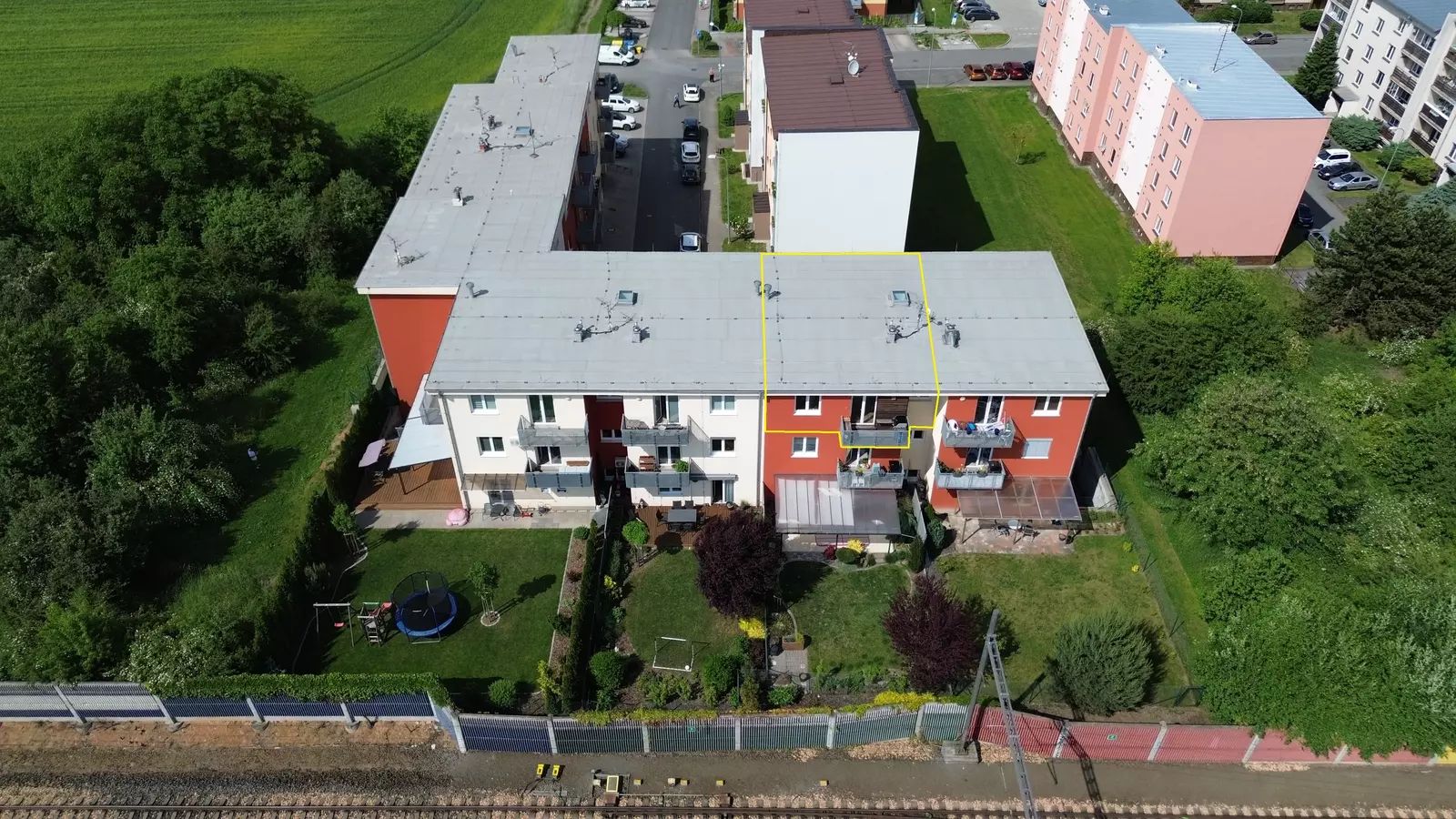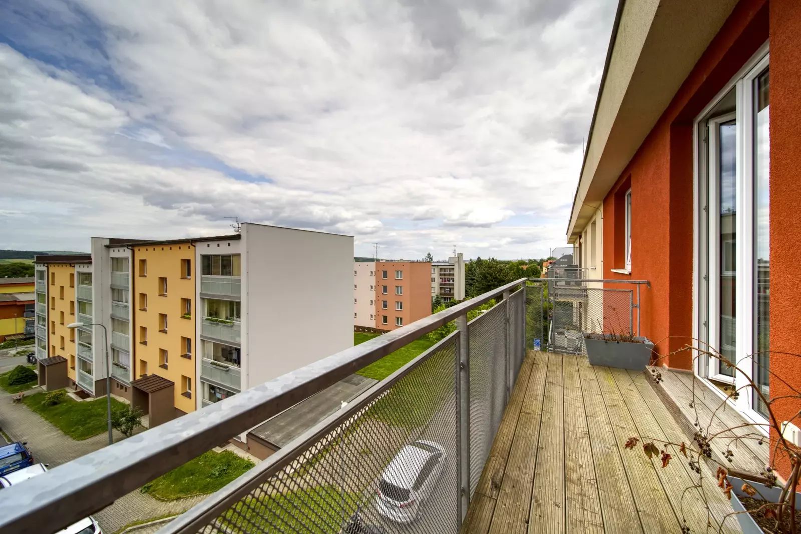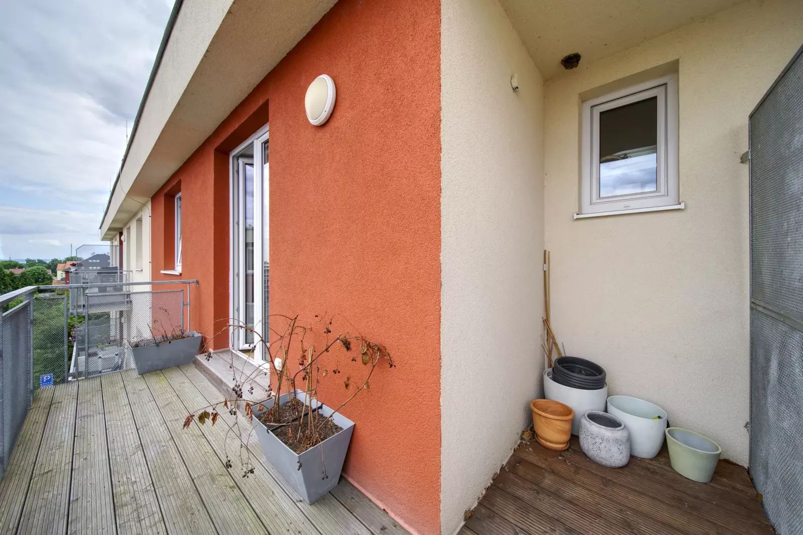 Byt je o celkové užitné ploše 77m2 plus balkón 4,5m2 se vstupem z obývacího pokoje a terasa 7,5m2 se vstupem z ložnice. K bytu dále náleží sklepní kóje přímo na patře a jedno venkovní parkovací místo u hlavního vchodu do domu.