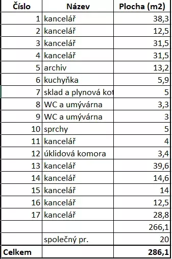 Plocha kanceláří m2