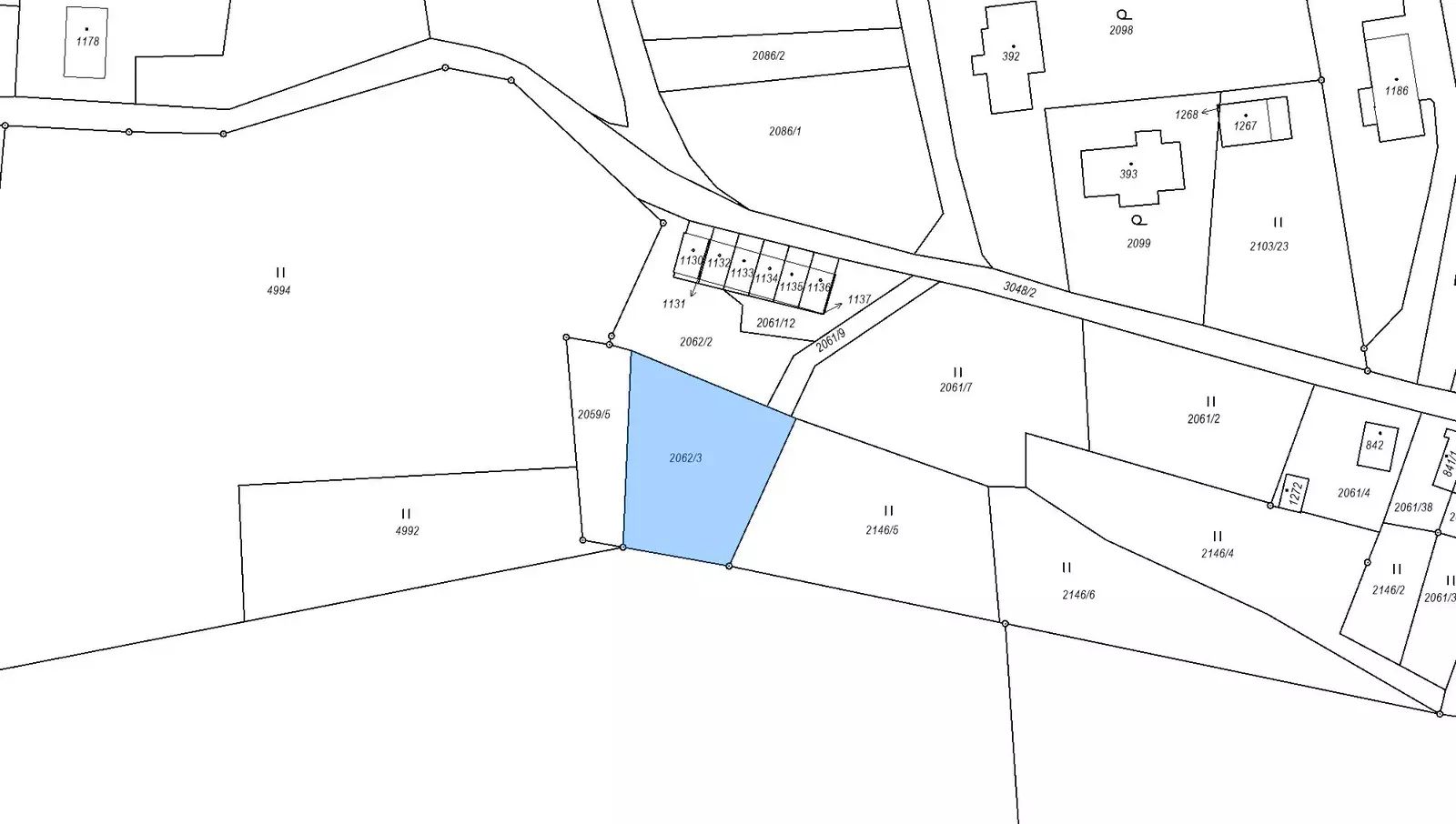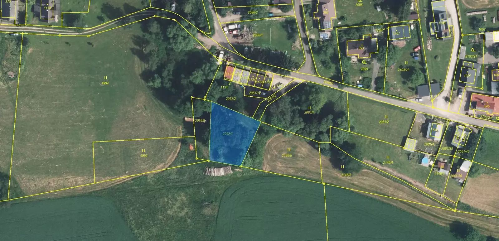 Posledních část obecní cesty k pozemku je dokončená jen z části (cca 1/2) a bude jí třeba na vlastní náklady dokončit, v katastru nemovitostí je označena pod č.p. 2061/9.