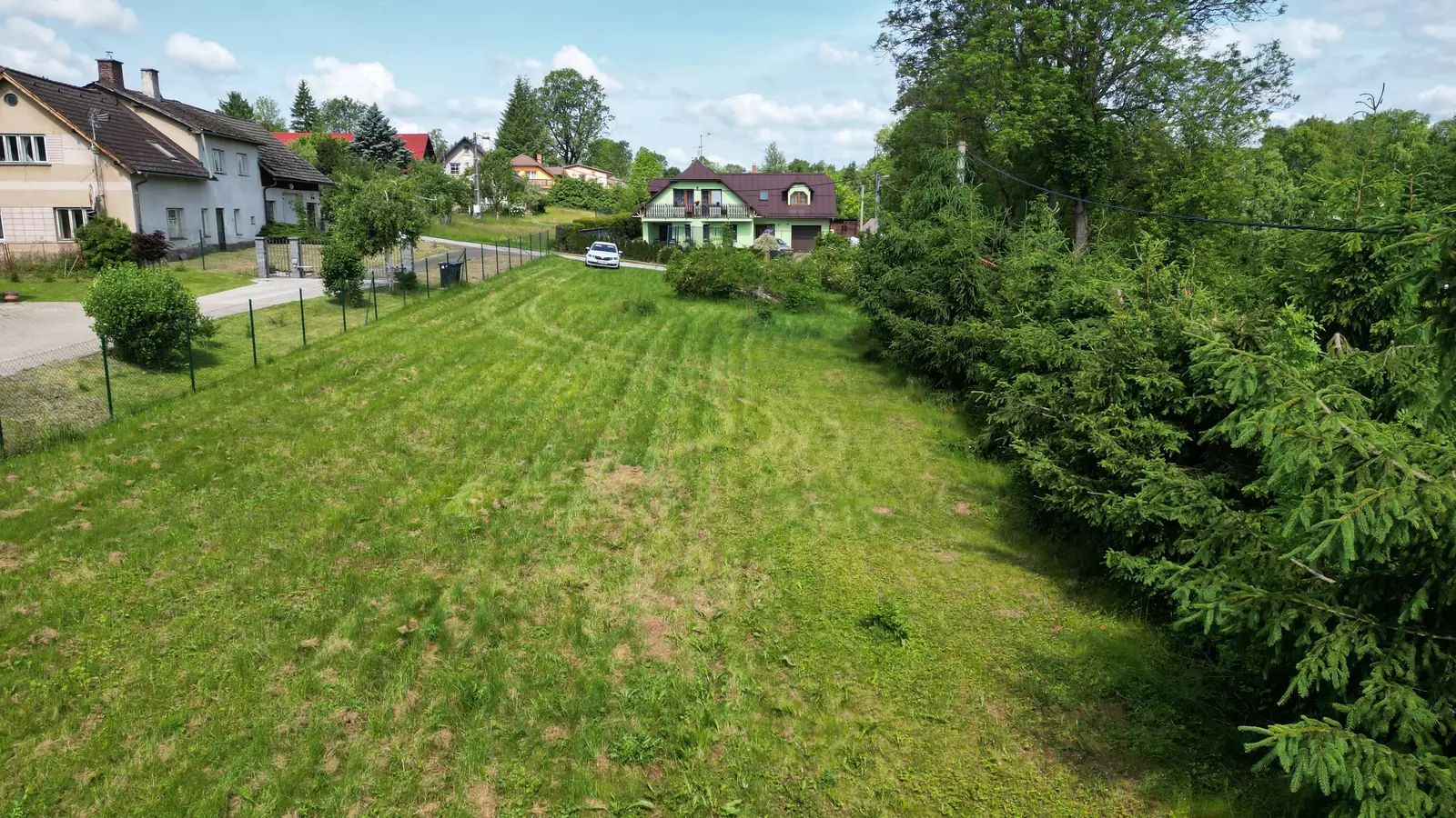 • Slunná a rovinnatá parcela – ideální pro dům i zahradu