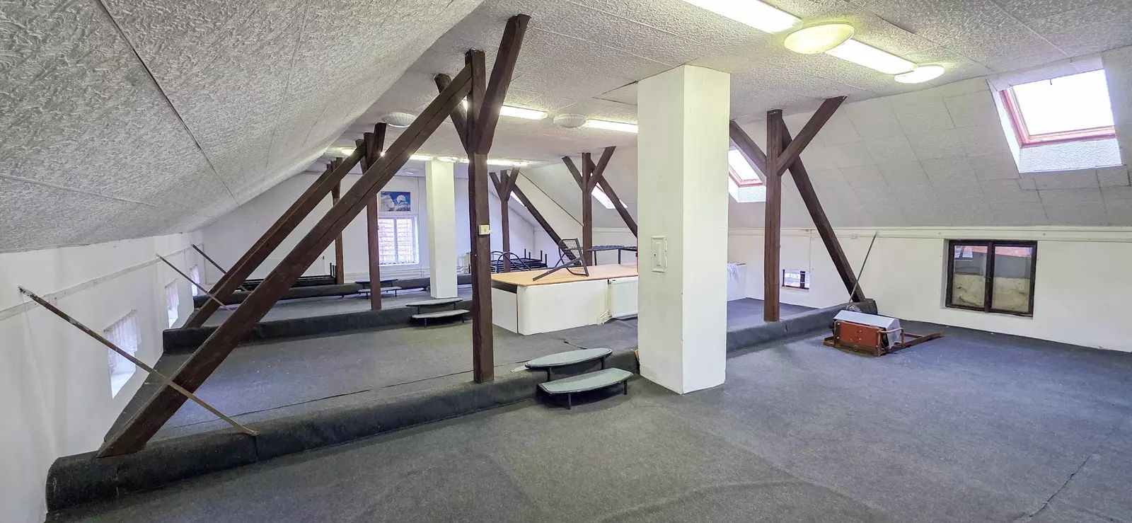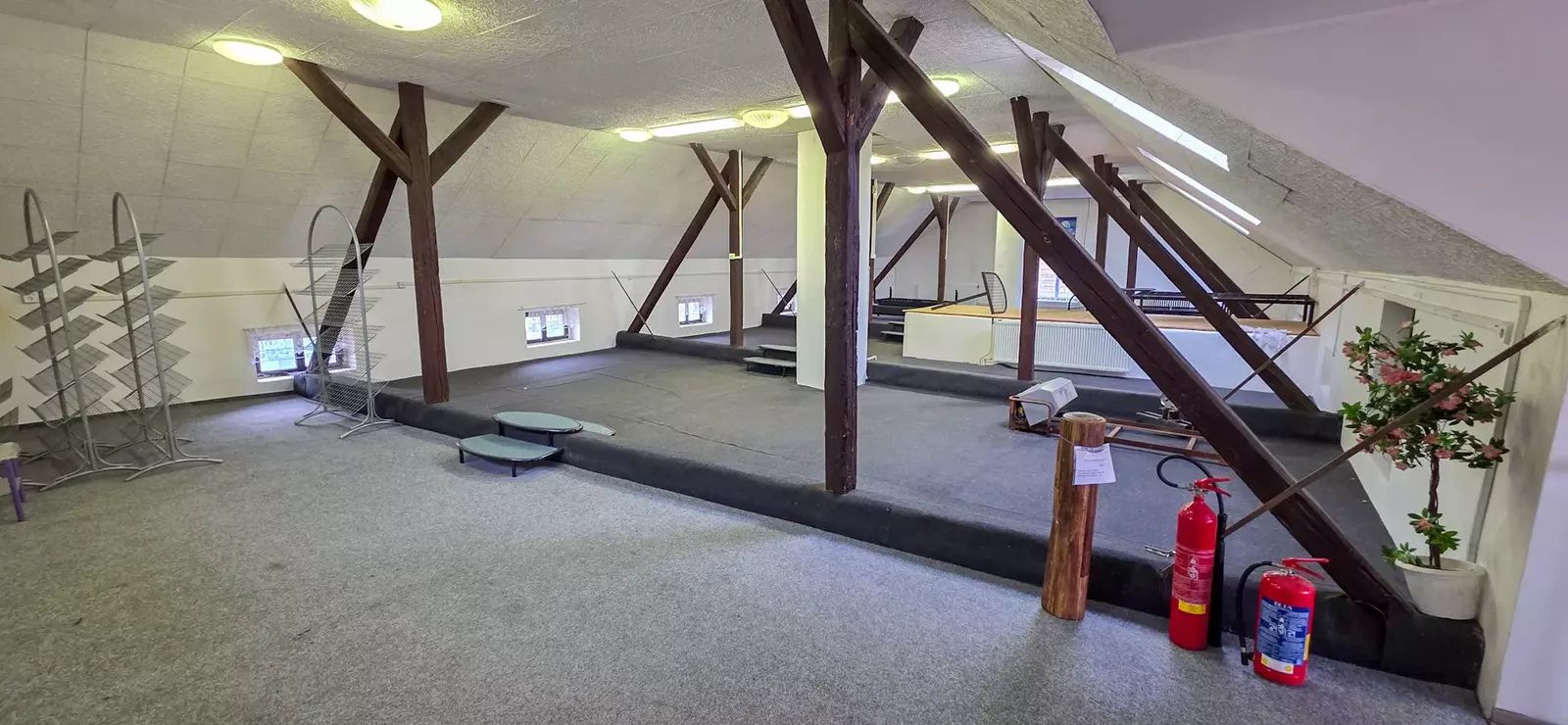 a) kancelář – 4,46 x 4,40 = 19,6 m² výška stropu 3,3 m