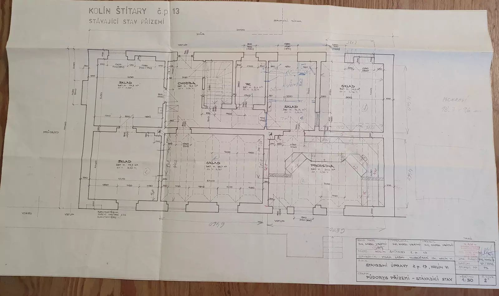 c) prodejna – 6,8 x 4,46 = 30,3 m²