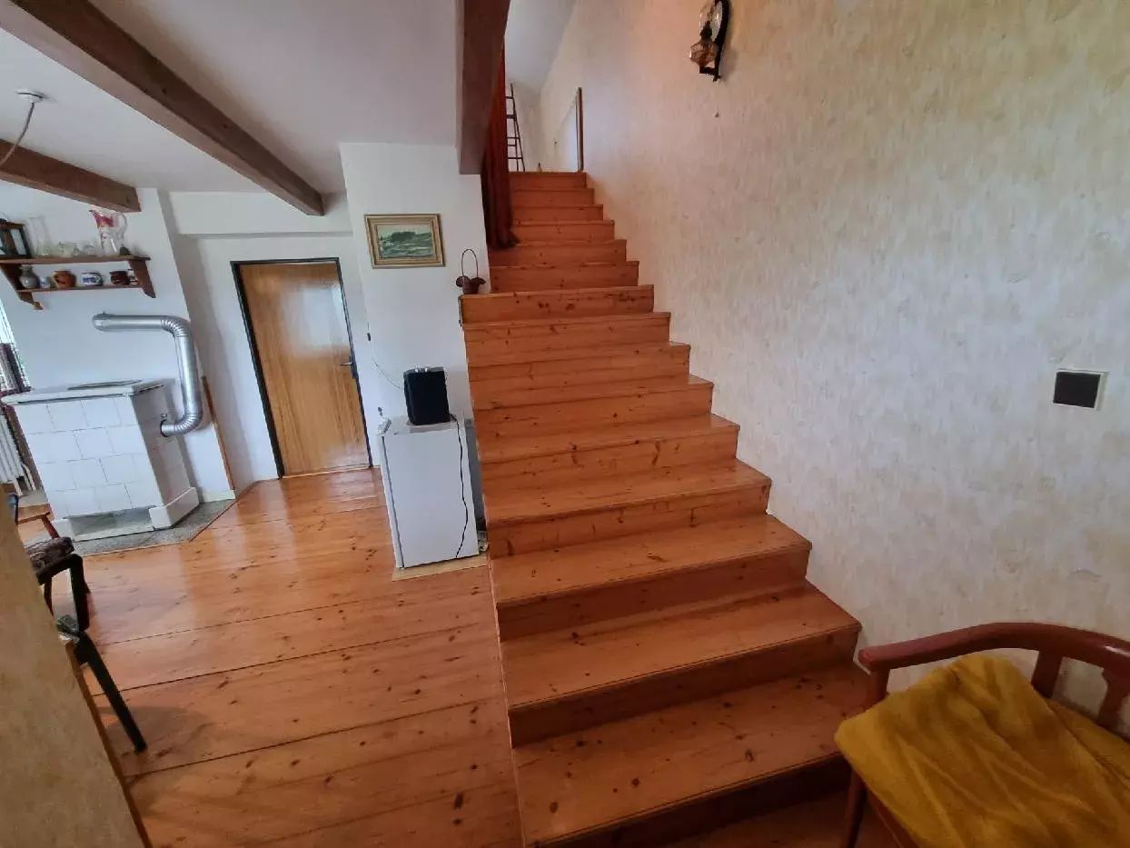 Dům, postavený v roce 1985, má tři patra a je koncipován jako rekreační objekt. Dům je zděný z tvárnic, střecha je krytá eternitem, okna jsou dřevěná. V prvním NP je dílna, 2 sklepy vhodné pro skladování zahrádkářských produktů, technické zázemí (bojler, kotel na TP), WC a spodní vstup do domu s chodbou a schodištěm do 2.NP. Ve 2.NP je prostorný hlavní pokoj (20 m²) s kachlovými kamny, ze kterého je vstup na terasu (11 m²) a z té je vstup do zahrady. Dále je zde kuchyňský kout s kamny na tuhá paliva, koupelna se sprchou, samostatné WC a chodba. Součástí hlavního pokoje je široké dřevěné schodiště do 3.NP, kde je z chodby vstup do dvou ložnic (20 m² a 8 m²). Větší ložnice má vlastní balkon (4,5 m²) orientovaný na jih.