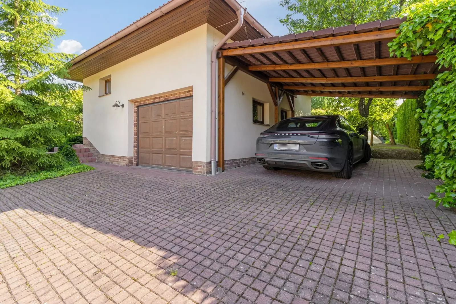 K dispozici jsou tři parkovací místa, včetně garáže a venkovního krytého stání a dalšího volného parkování před garáží. Vedle garáže je ještě jedna prostorná skladovací místnost.