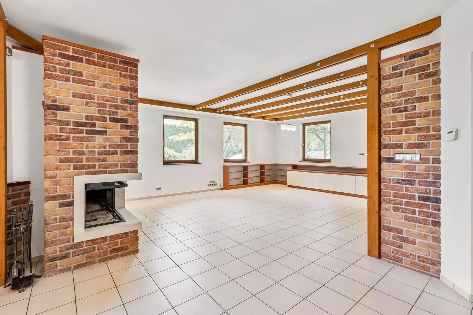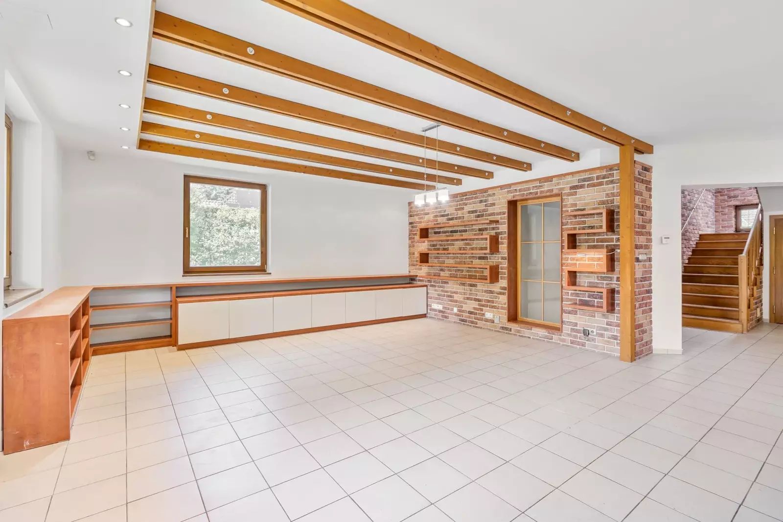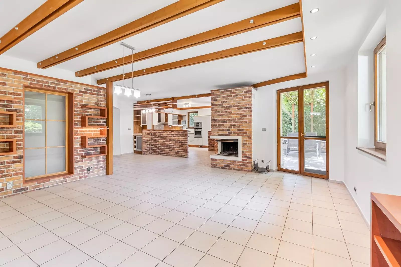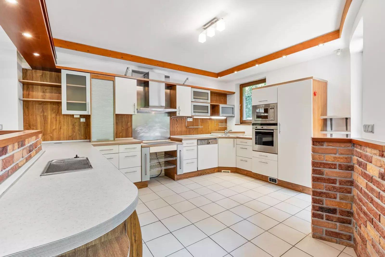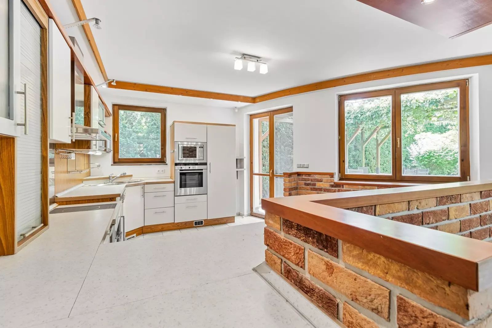 Dům je řešen jako 6+1, což umožňuje komfortní bydlení i pro početnější rodiny. Velkorysý obývací pokoj je spojený s prostornou kuchyní a jídelnou. Velká okna a francouzské dveře zajišťují dostatek denního světla a přímý přístup na terasu a do zahrady z pokoje i z kuchyně. V přízemí je dále pokoj pro hosty, koupelna s WC, šatna, prádelna, posilovna s výstupem na zahradu, finská sauna a herna. Ve druhém nadzemním podlaží jsou čtyři pokoje, samostatné WC, prostorná atypická koupelna s vanou, sprchou a dvěma umývadly, šatna.