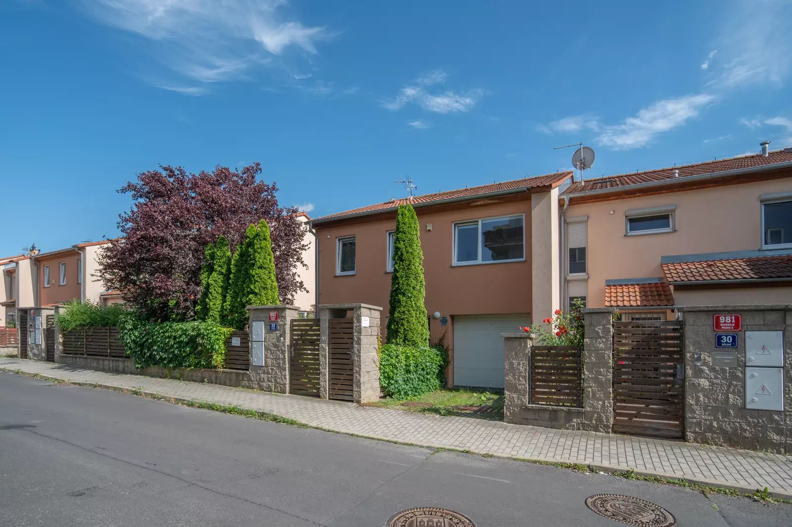 K domu navíc náleží velká vytápěná garáž o rozloze 17,7 m² s vraty na dálkové ovládání a další parkovací místo před domem, které určitě oceníte při hledání parkování v tomto vyhledávaném městském obvodu.