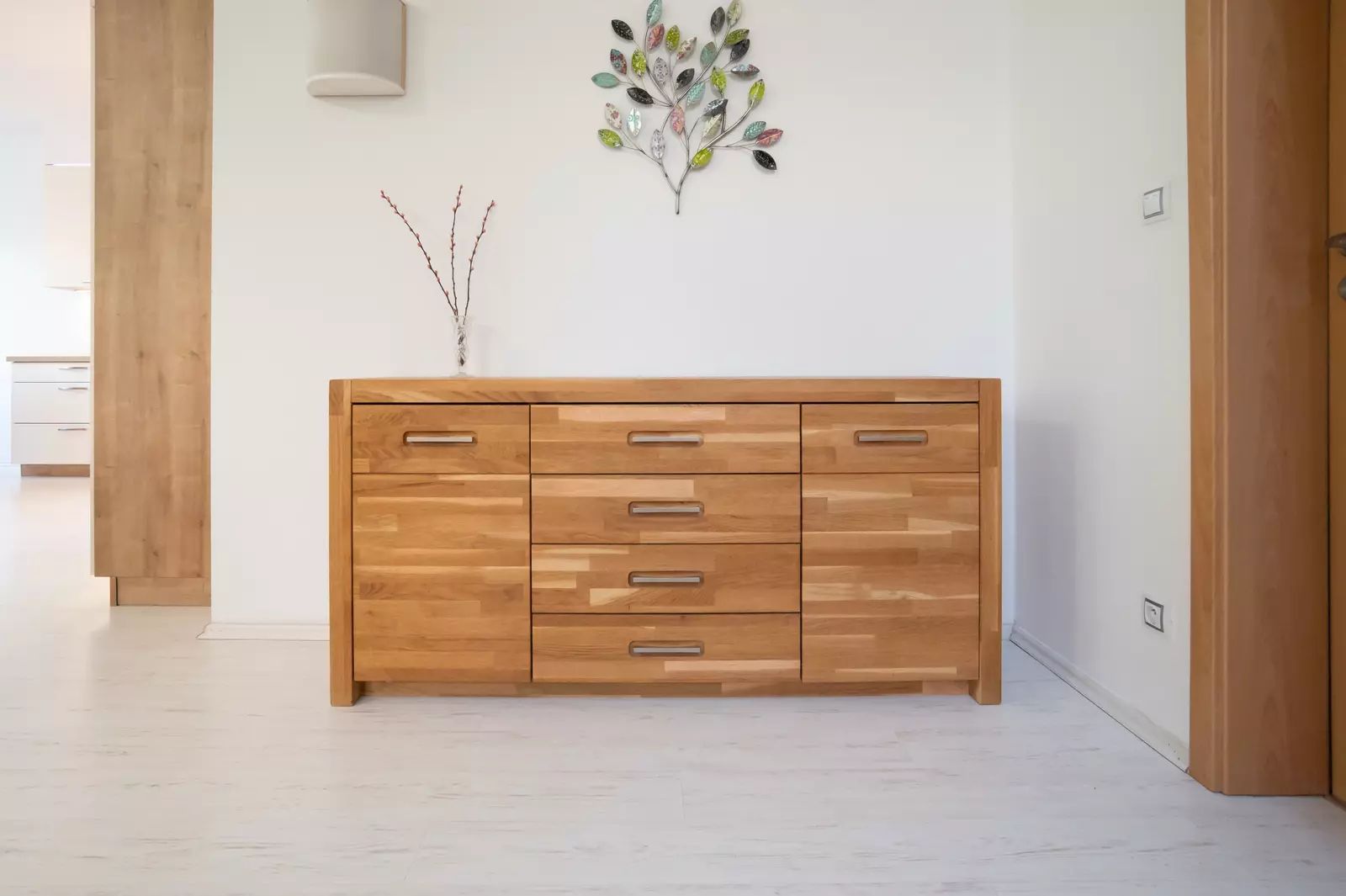 Obývací prostory s celkovou plochou 138 m² jsou rozloženy na dvou patrech, což zajišťuje dostatek soukromí a pohodlí pro všechny členy domácnosti. . V prvním nadzemním podlaží je chodba se vstupem do garáže, samostatné WC s umyvadlem, technická místnost, obývací pokoj s kuchyní a jídelnou. Ve druhém nadzemním podlaží jsou čtyři neprůchozí pokoje o rozloze 13,9 m², 11,8 m², 11,7 m² a 10,7 m². Dále pak dvě koupelny s WC, z toho jedna je přístupná přímo z ložnice. Druhá koupelna s vanou, umyvadlem a WC je přístupná z chodby. V domě jsou dvě na míru vyrobené vestavné skříně, které zajišťují dostatek úložného prostoru. Kuchyň je vybavena luxusní kuchyňskou linkou včetně spotřebičů BOSCH. Obývací pokoj je také připraven pro domácí kino, včetně neviditelně položené kabeláže ve zdech pro zesilovač, přední a zadní reproduktory, projektoru montovaného na stropě a roletového projekčního plátna o rozměru 274 x 205 cm.