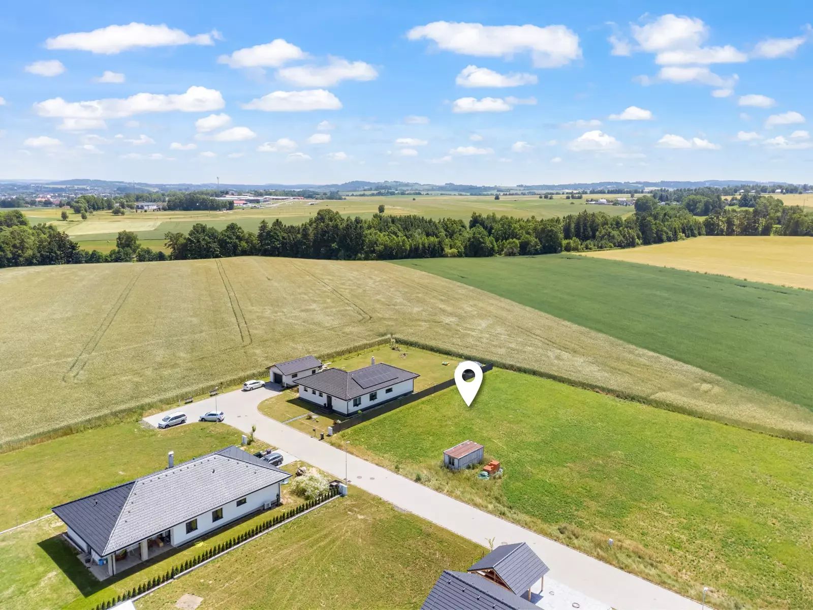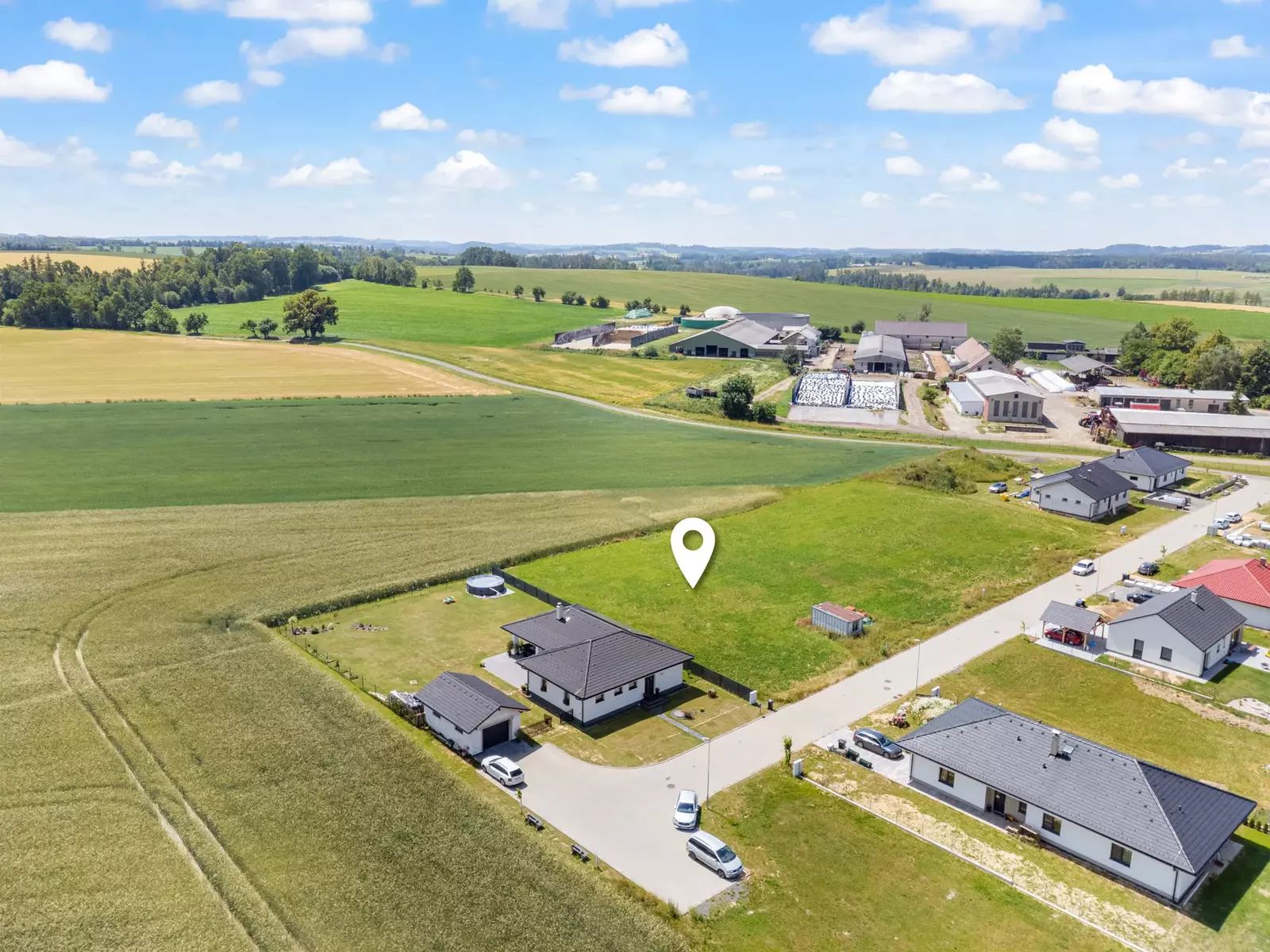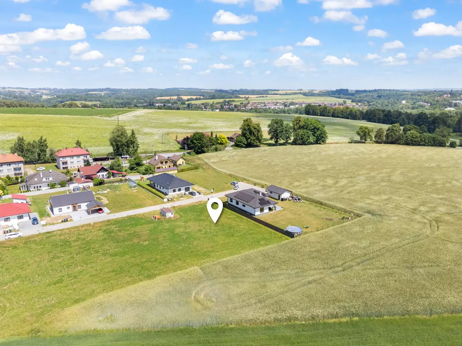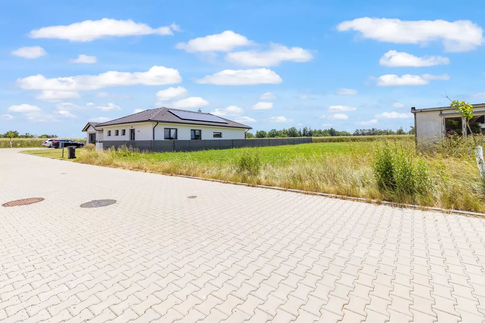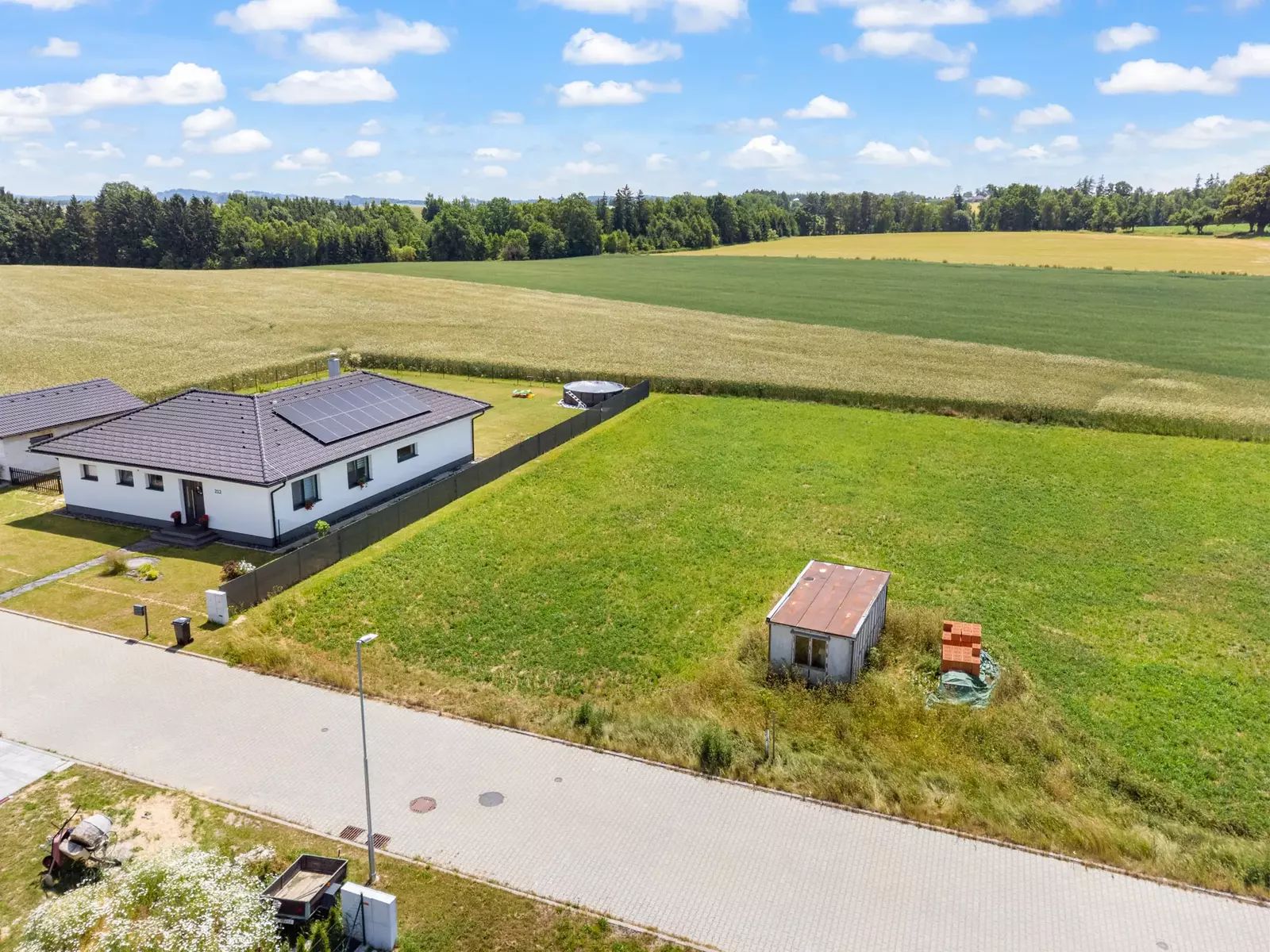 Jedná se o kompletně zasíťovaný stavební pozemek (elektřina, voda, kanalizace) s přímým napojením na obecní komunikaci. Příjezdová cesta je asfaltová a celoročně udržovaná. Pozemek je připraven k okamžité výstavbě rodinného domu.