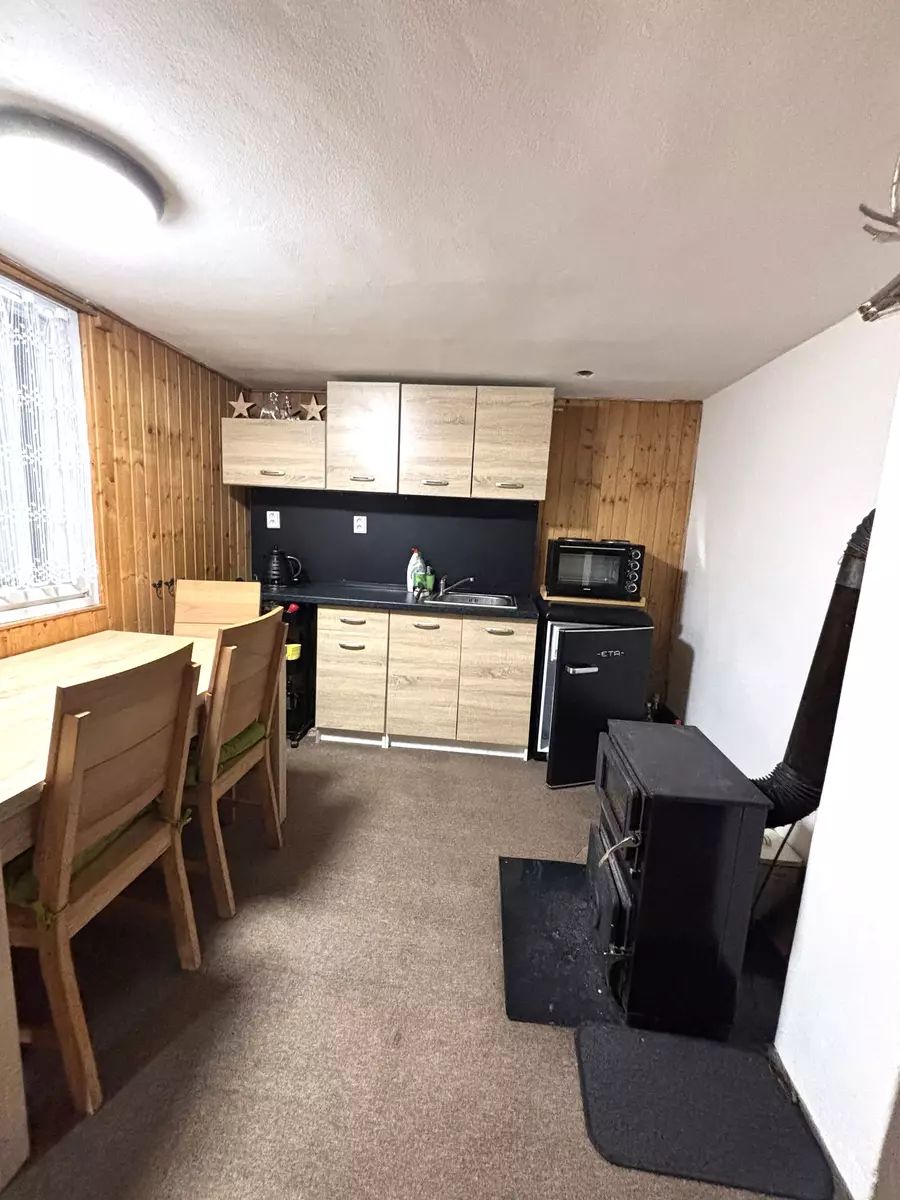• Rekreační chata s evidenčním číslem – koupelna se sprchovým koutem, samostatné WC, kuchyň, obývací pokoj + 2 ložnice v podkroví