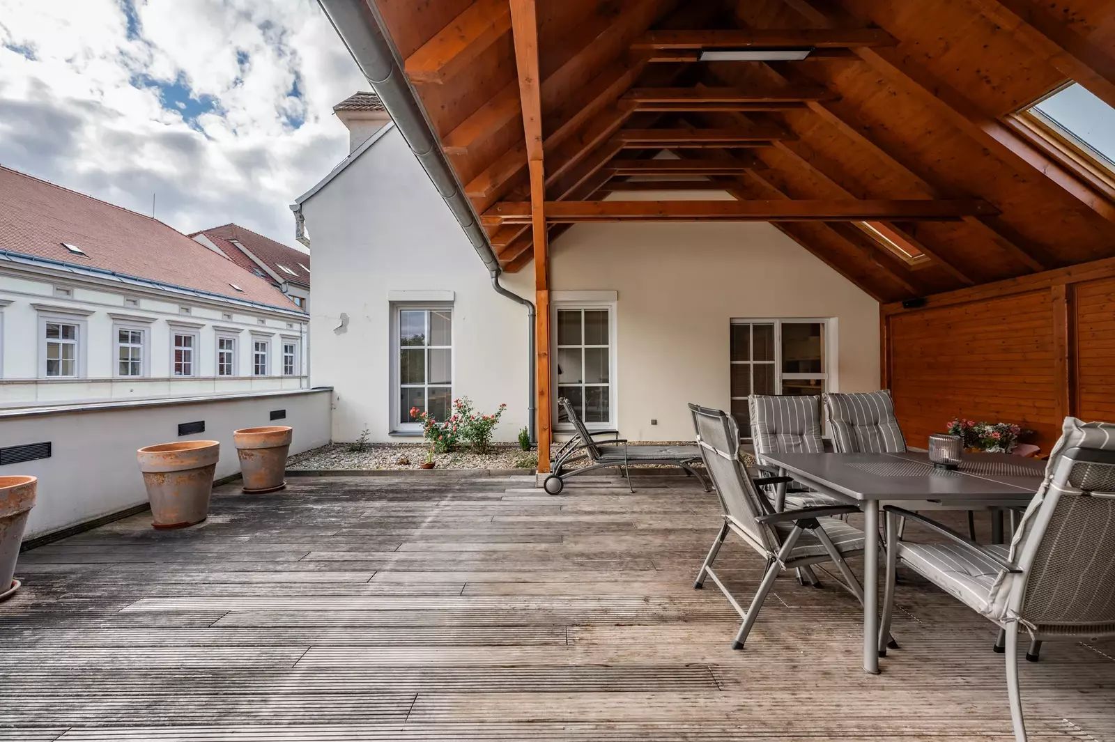 Nadstandartní byt 5+1 na náměstí ve Valticích o výměře 218m2 s terasou 98m² a garáží pro 4 auta