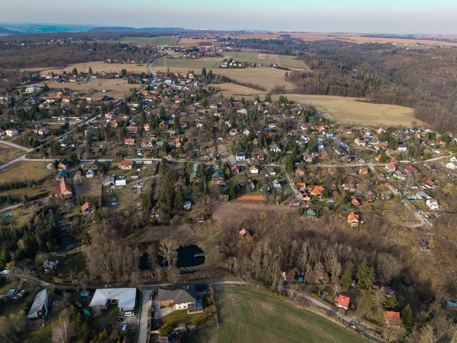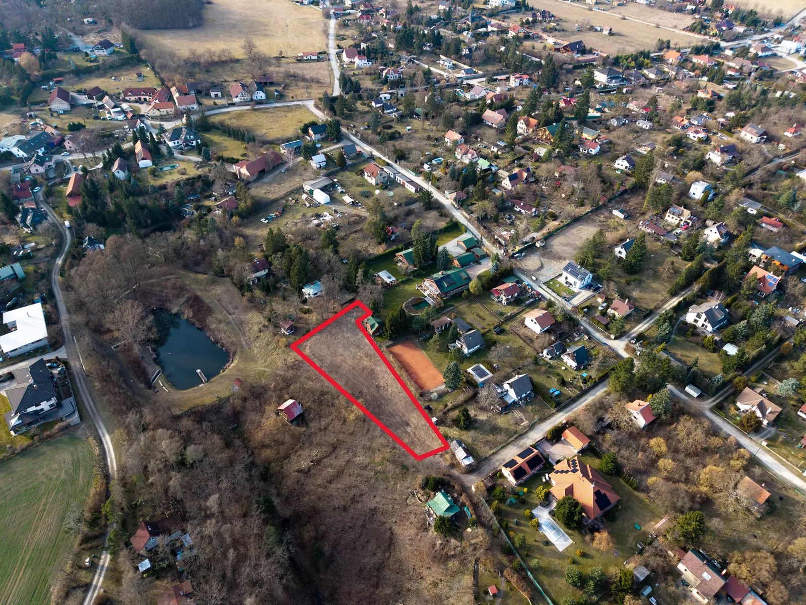 Pozemek kombinuje klidné prostředí vesnice s výbornou dostupností infrastruktury.