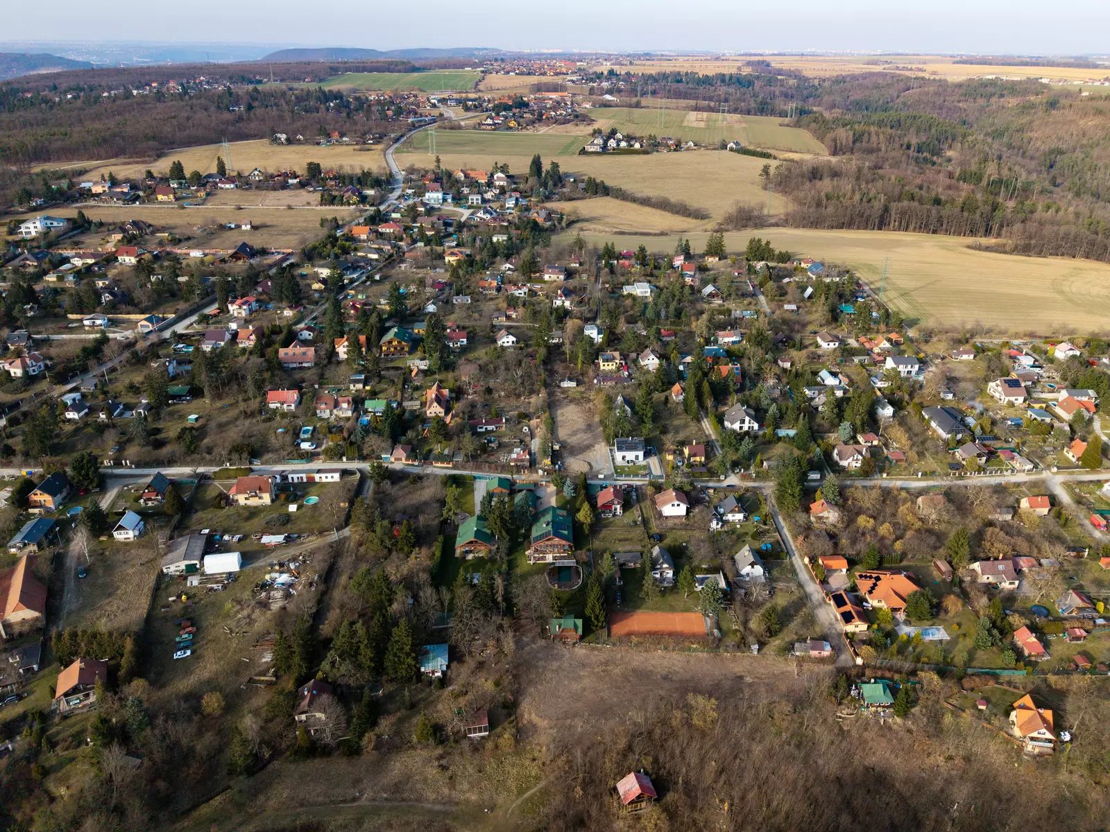 Pozemek kombinuje klidné prostředí vesnice s výbornou dostupností infrastruktury.