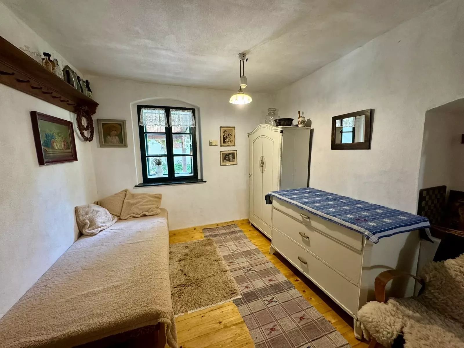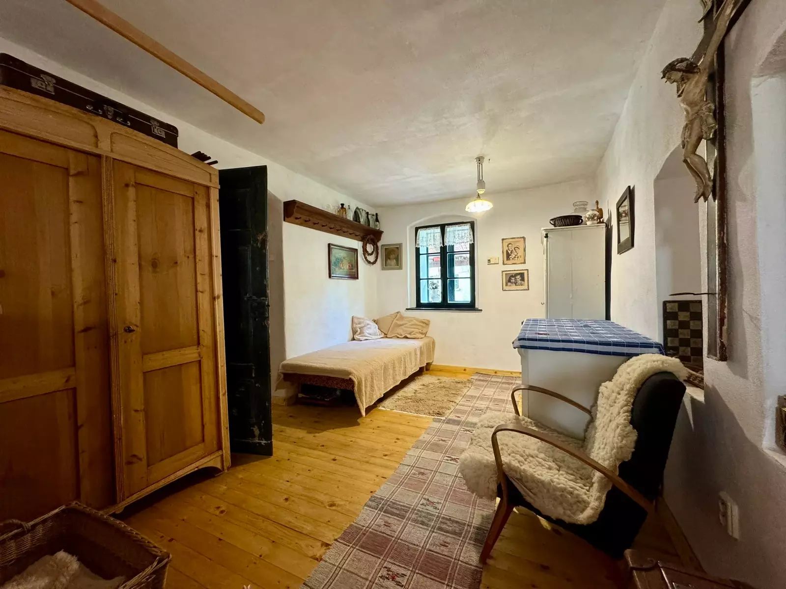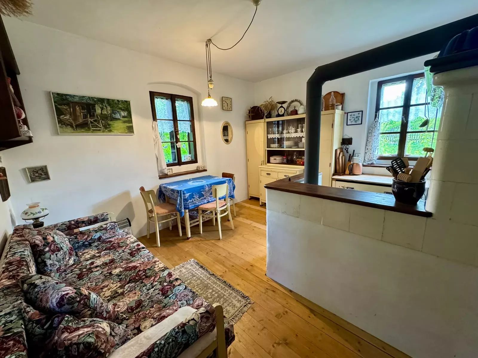Hlavní roubená chalupa s číslem popisným o dispozici 3kk je nemovitou kulturní památkou a navazuje na ní stodola využívána jako kovářská dílna. Devizou nemovitosti je roubená světnice v původního stylu s masivním krbem. Ve druhém nadzemním podlaží nalezneme obytné podkroví s výstupem na balkón a nad dílnou pochozí podkroví s možností rozšíření o další obytné prostory.