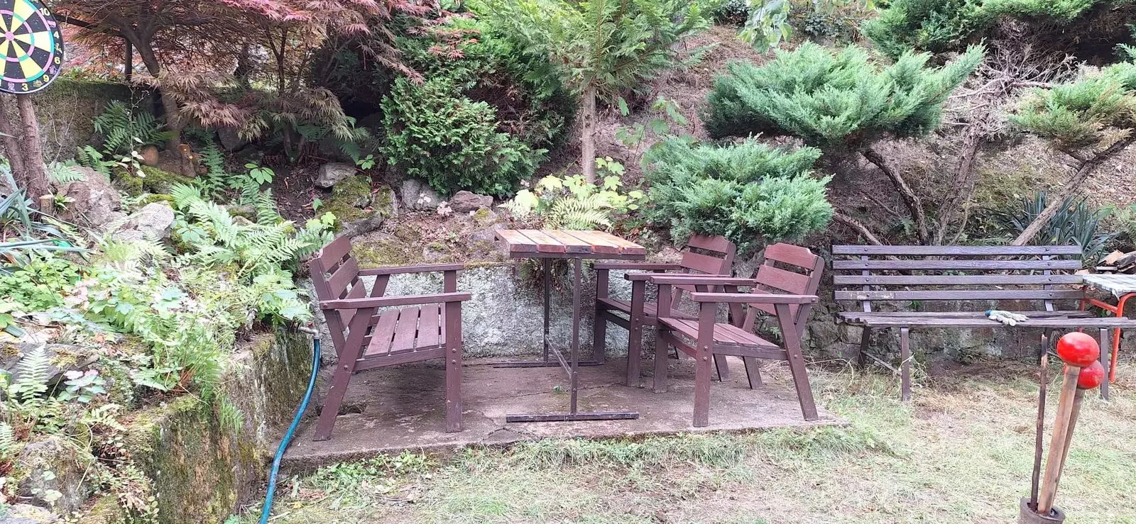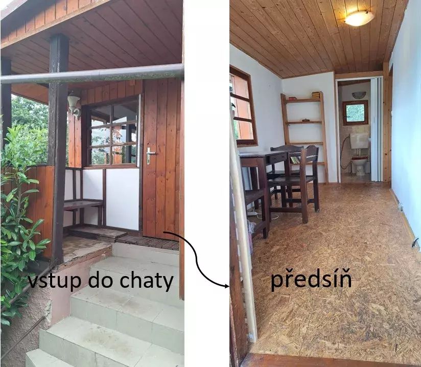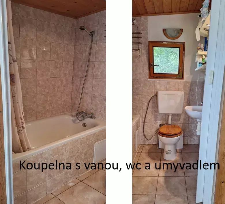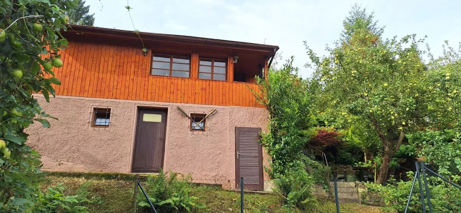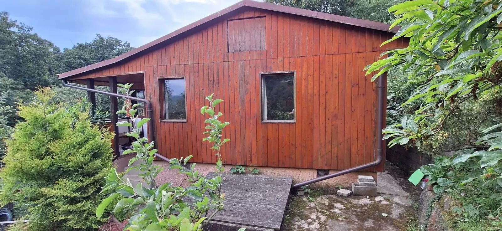 Exkluzivně nabízíme rekreační chatu na vlastním pozemku 461 m2 s dispozicí 2+1. Chata je konstrukčně kombinací zdiva (sklepní prostor) a dřevostavby, ve velmi dobrém stavu. Z malé vstupní terasy vcházíte do světlé prosklené chodby, z ní vede potom samostatný vstup do koupelny (wc, umyvadlo, vana), pokoje a kuchyně, za kterou se nachází další samostatný pokoj. Chatka je v původním ale udržovaném stavu, v plastu je rozvedena teplá a studená voda, chatka je připojena na obecní vodovod. Sklepní prostory jsou částečně nad zemí (svah) a mají okna, sklep je suchý. Ohřev teplé vody je zajištěn bojlerem (umístění ve sklepě), stejně tak je ze sklepa přiveden plyn (bomba) do sporáku v kuchyni. Odpad je vyřešen jímkou. Dešťová voda je sváděna do podzemní nádrže před chatou.