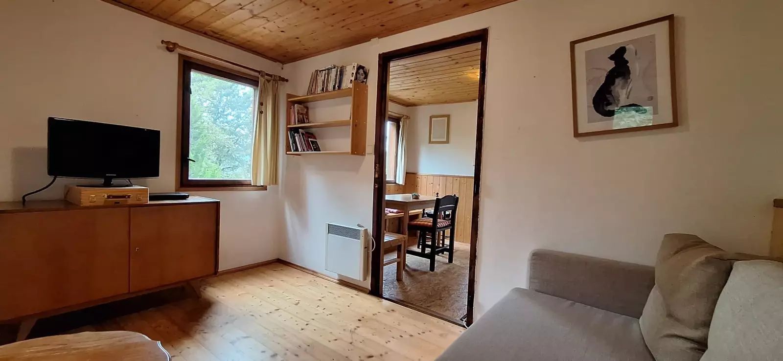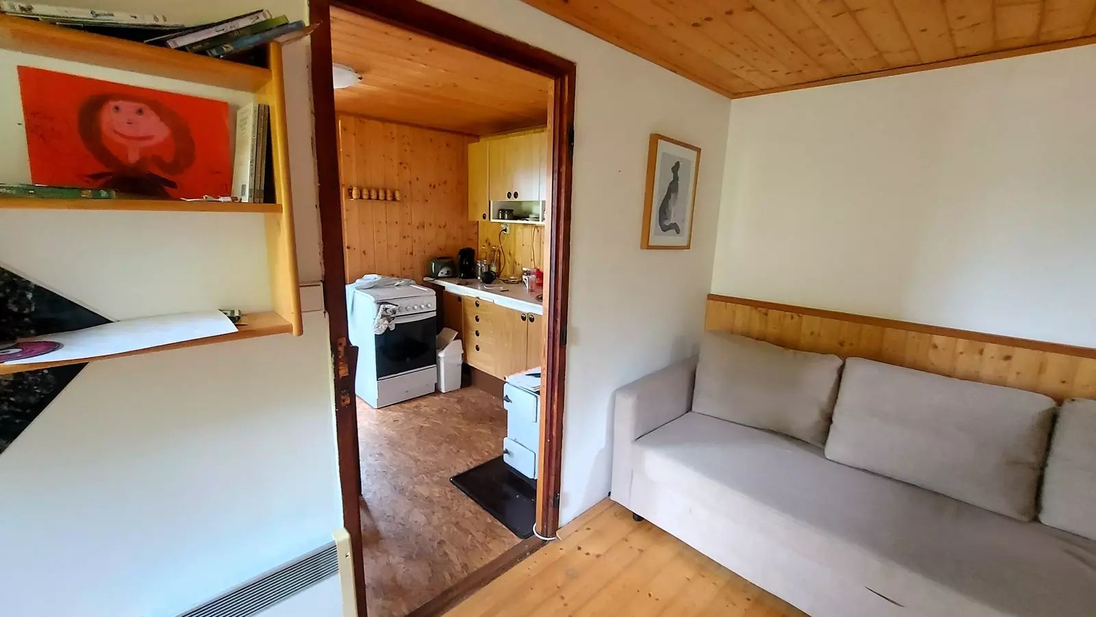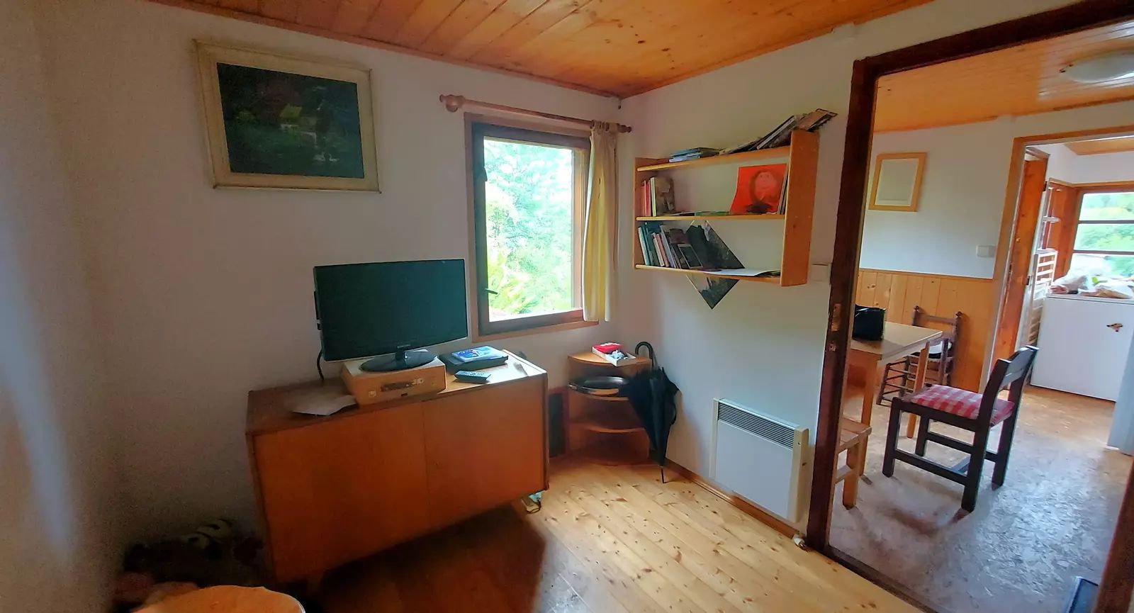 Exkluzivně nabízíme rekreační chatu na vlastním pozemku 461 m2 s dispozicí 2+1. Chata je konstrukčně kombinací zdiva (sklepní prostor) a dřevostavby, ve velmi dobrém stavu. Z malé vstupní terasy vcházíte do světlé prosklené chodby, z ní vede potom samostatný vstup do koupelny (wc, umyvadlo, vana), pokoje a kuchyně, za kterou se nachází další samostatný pokoj. Chatka je v původním ale udržovaném stavu, v plastu je rozvedena teplá a studená voda, chatka je připojena na obecní vodovod. Sklepní prostory jsou částečně nad zemí (svah) a mají okna, sklep je suchý. Ohřev teplé vody je zajištěn bojlerem (umístění ve sklepě), stejně tak je ze sklepa přiveden plyn (bomba) do sporáku v kuchyni. Odpad je vyřešen jímkou. Dešťová voda je sváděna do podzemní nádrže před chatou.
