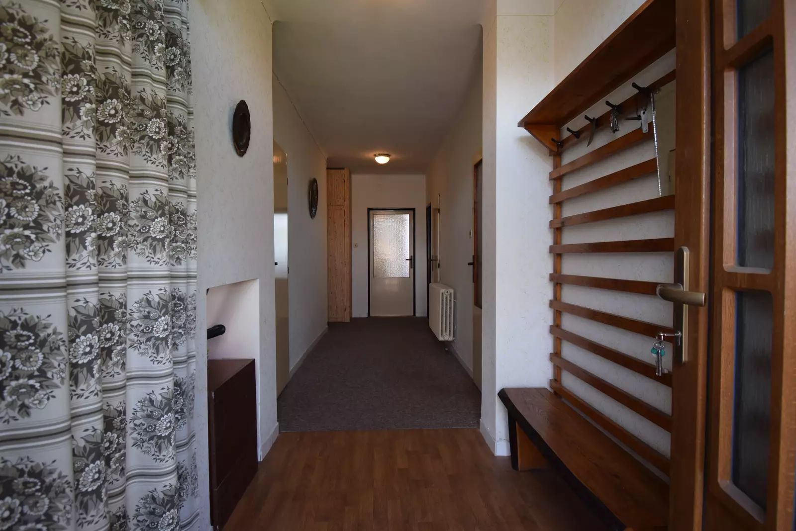 Interiér domu je částečně zařízen a jeho velikost umožňuje komfortní bydlení pro větší rodinu s možností vybudování několika podkrovních místností. Této úvaze napomáhá umístění schodiště na půdu, které je uvnitř domu, je přístupné z chodby a také velikost půdního prostoru. Dům disponuje sklepem, což je výhodné pro skladování nebo jako další prostory pro příruční domácí dílnu. Vytápění domu je zajištěno ústředním plynovým topením včetně ohřevu vody. Rodinný dům je napojen na vodovodní a kanalizační řad, elektřina 230V/400V.