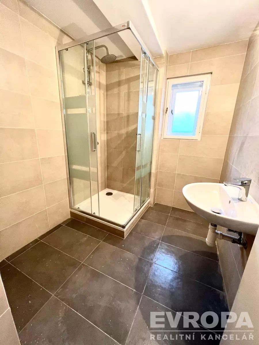 Před bytem vstupní zádveří navazuje na chodbu, samostatné WC a koupelna se zděným sprchovým koutem. Služby 1100, zálohy na vodu 900kc/ 2x osoba. Energie budou napsány na nájemce. Kauce na dohodě.