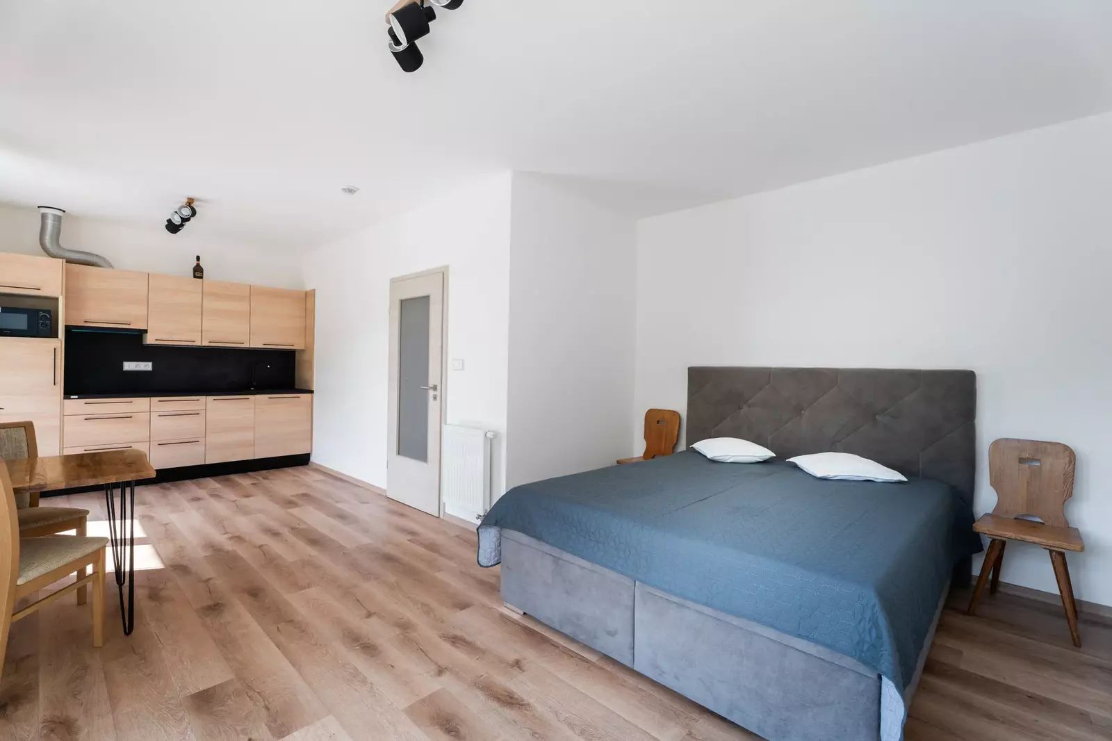 • Apartmán je vybavený – ihned připravený k užívání nebo pronájmu (kuchyňská linka, nábytek, postel, jídelní stůl, TV, atd.)