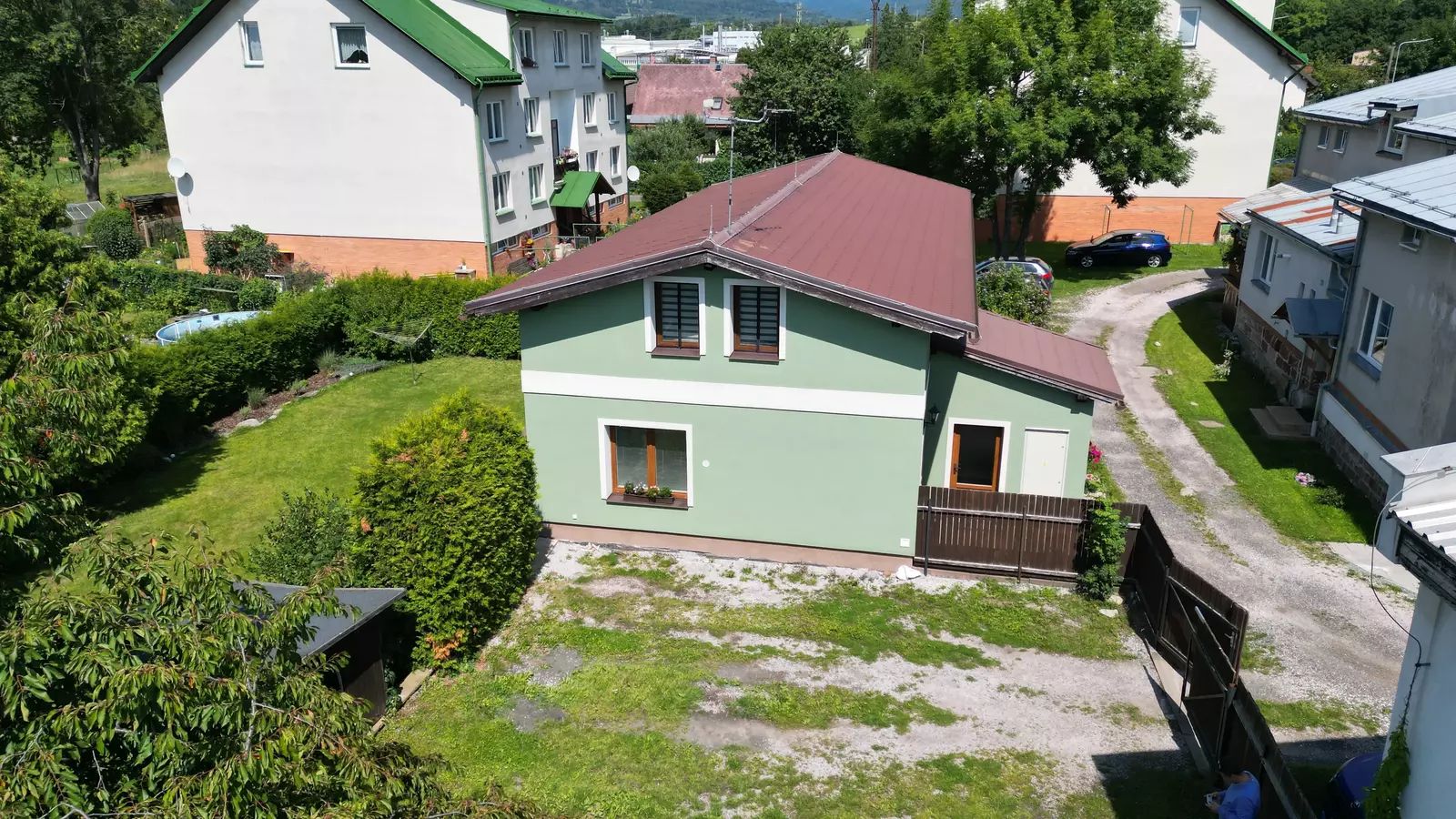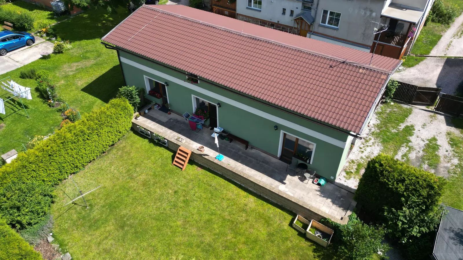 K domu je od města Vrchlabí pronajatý pozemek o celkové výměře 430 m2, který slouží jako společná zahrada a místo pro parkování osobních vozidel nájemníků.