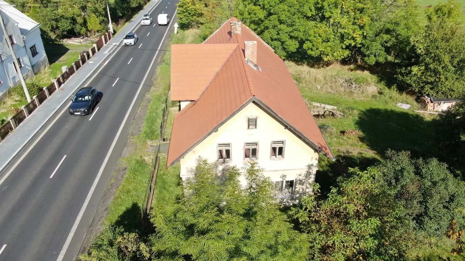 Dům se nachází na okraji městské zástavby a nabídne novým majitelům přímý kontakt s přírodou, naprostý klid CHKO a soukromí oplocené zahrady v zadní části traktu, kterou navíc lemují vzrostlé stromy. Největší část pozemku, mírně svažitou slunnou louku, lze snadno proměnit v ovocný sad nebo pastvinu pro hospodářská zvířata. Zároveň má skvělou polohu u hlavní komunikace směr Nový Bor a Česká Kamenice (Děčín), což může být velkou výhodou, pokud bude nemovitost sloužit nejen k bydlení, ale případně i jako dílna nebo firemní provozovna.
