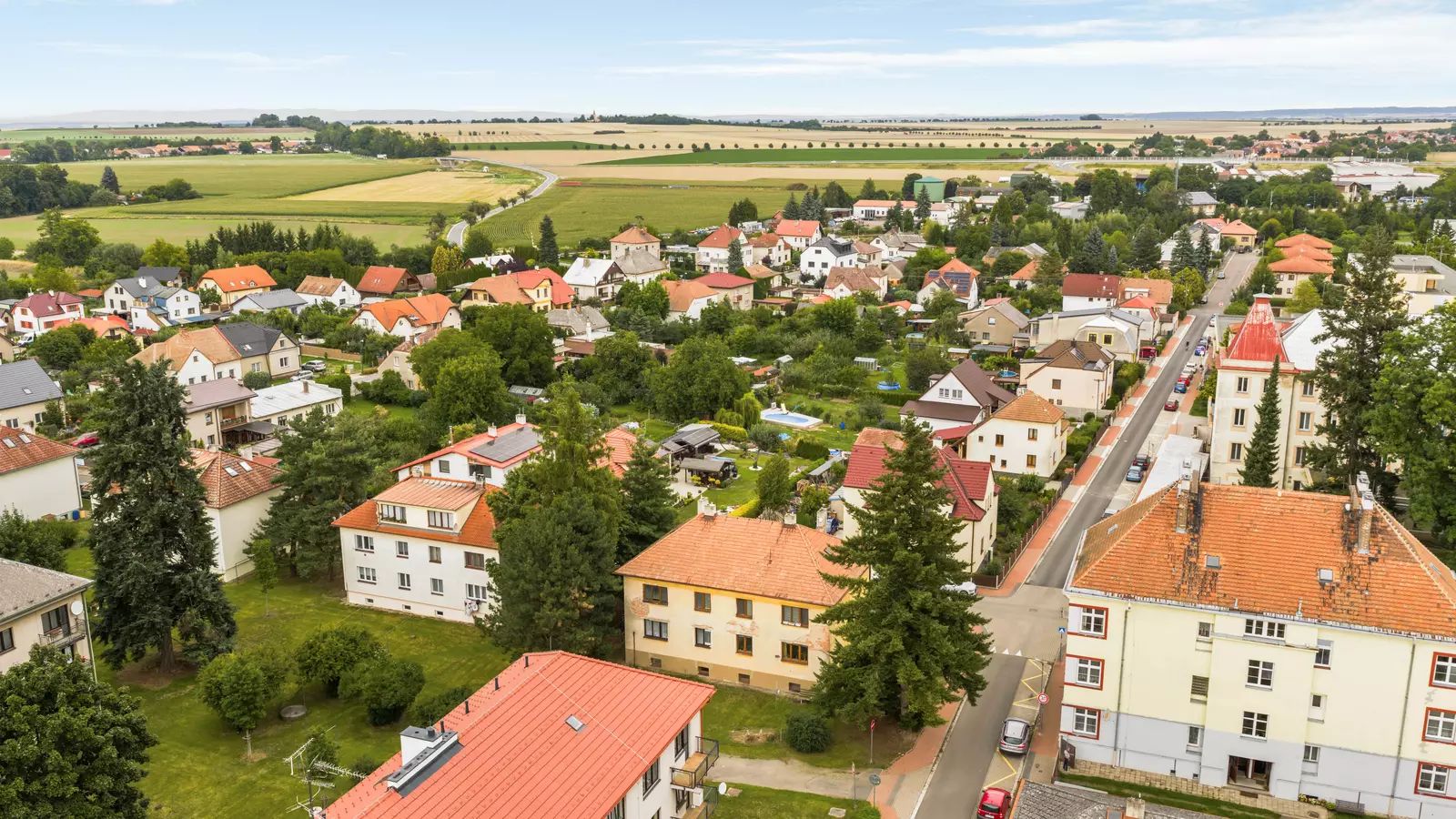 Přípojky: obecní vodovod, obecní kanalizace, elektřina 220/380V, plyn na vytápění a ohřev vody el. bojlerem. Plynový kotel na vytápění bytu je umístěn ve sklepě.