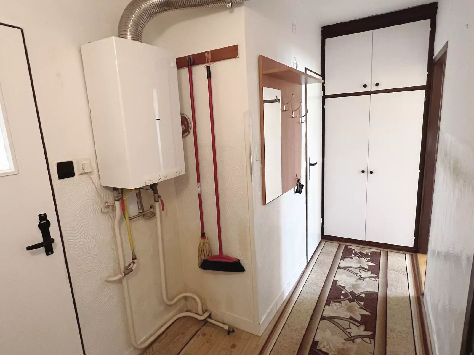 Byt je v původním, udržovaném stavu. Má nová plastová okna, vytápění zajišťuje vlastní plynový kotel, dále i ohřev vody. Elektroinstalace je původní (230 V). K dispozici jsou i společné prostory – sušárna a předzahrádky před a za domem, které slouží k užívání pro obyvatele domu.