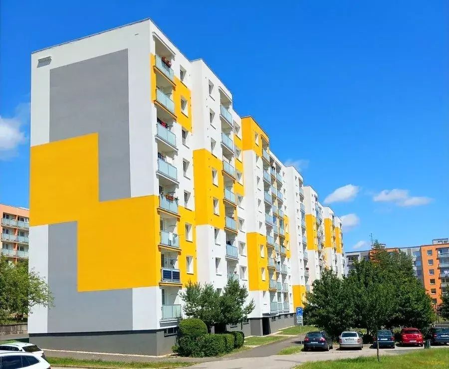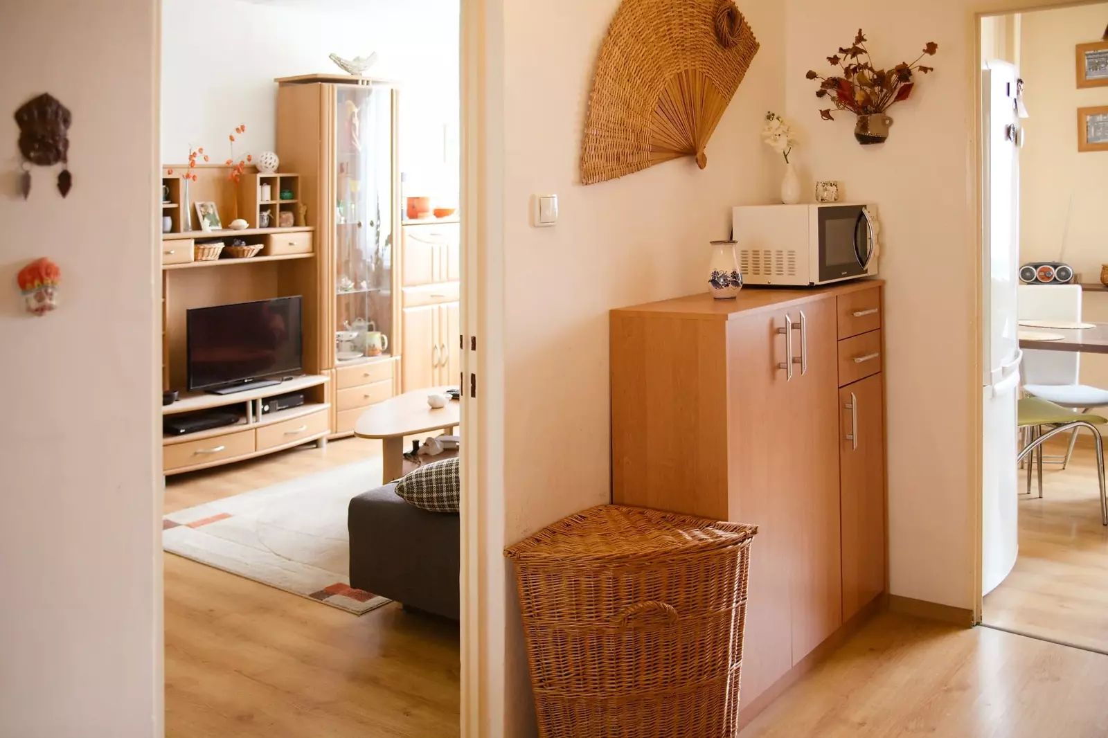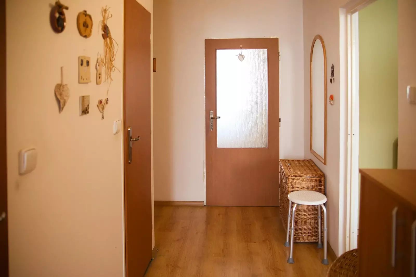 Byt se skládá ze vstupní chodby, která slouží jako distribuční koridor do všech místností. Obývací pokoj je prostorný s dostatkem přirozeného světla, kuchyně je vybavená základními spotřebiči a nabízí dostatek místa pro vaření a stravování rodiny. Byt disponuje dvěma ložnicemi, které jsou ideální pro rodinné bydlení. Koupelna a toaleta jsou oddělené, což usnadňuje ranní přípravu v pracovní dny. Součástí je i balkon s plochou 3 m², odkud se nabízí výhled na běžecký areál Hraběnka.