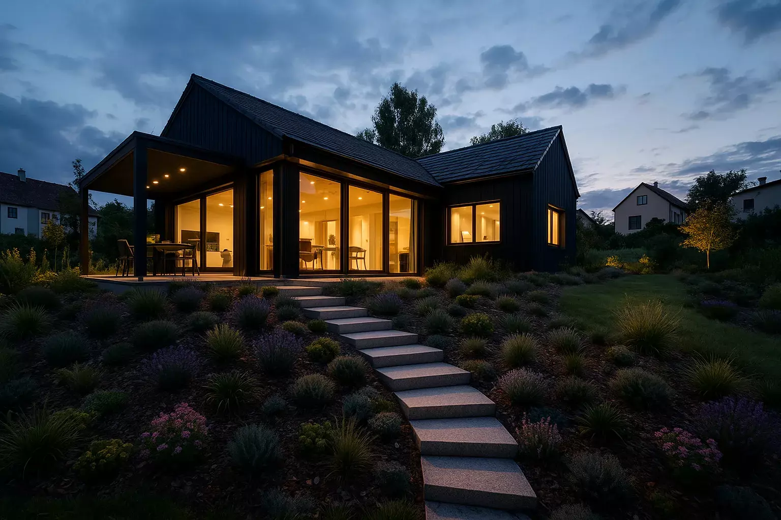 Současná zastavitelná část pozemku je 50 % z celkové plochy pozemku. Jednou z podmínek ÚP HB v ploše BI (bydlení v RD) je respektování výškové hladiny stávající zástavby, tedy zachování uliční linie.