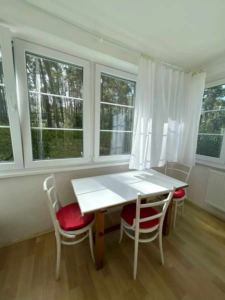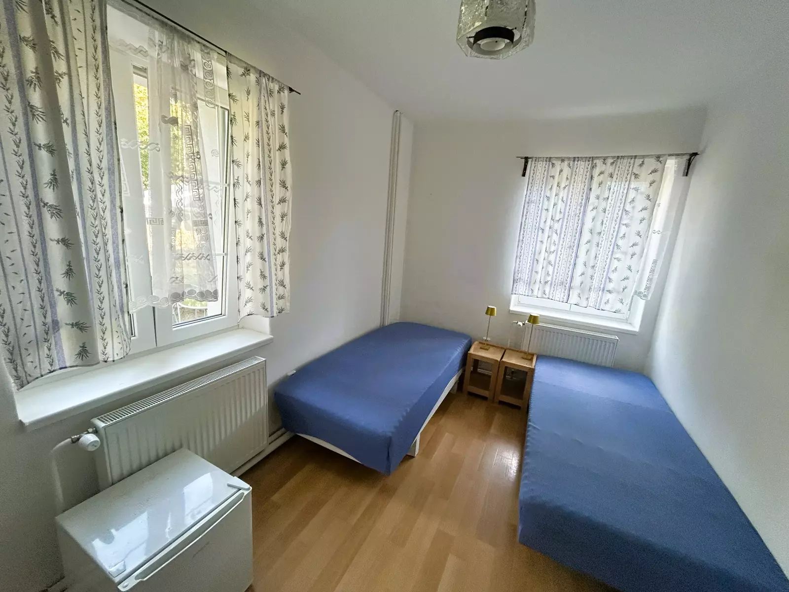 Vila o užitné ploše 150m2 disponuje 4 dvoulůžkovými pokoji různých velikostí, každý s TV, miniledničkou a vlastním sociálním zařízením (umyvadlo, sprchový kout, WC). Kuchyň je zařízena v útulném retro stylu a je společná. K dispozici je pračka se sušičkou. Dům má navíc terasu, zimní zahradu a nájemníci mají dále možnost využití zahrady a venkovního posezení. Volný je ihned a datum ukončení pronájmu je k 31.5.2026, případně dále po dohodě s majitelem.