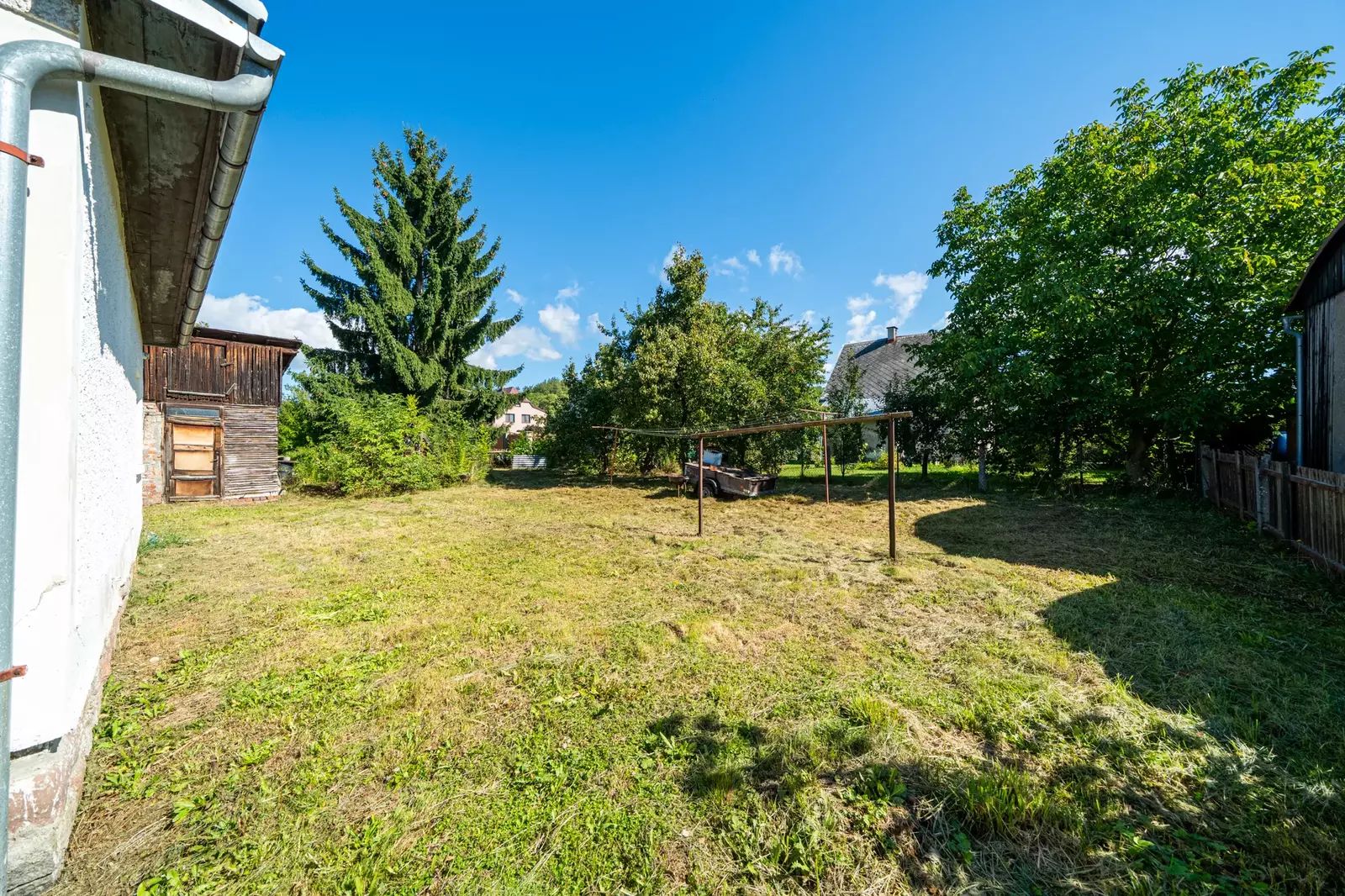 Součástí nemovitosti je zahrada o výměře 802 m² se vzrostlými ovocnými stromy, která poskytuje dostatek soukromí a prostoru pro relaxaci, zahradničení i rodinné aktivity. Na pozemku se nachází také starší kůlna, vhodná k rekonstrukci nebo nahrazení novou doplňkovou stavbou, například garáží, pergolou, dílnou či zahradním domkem.