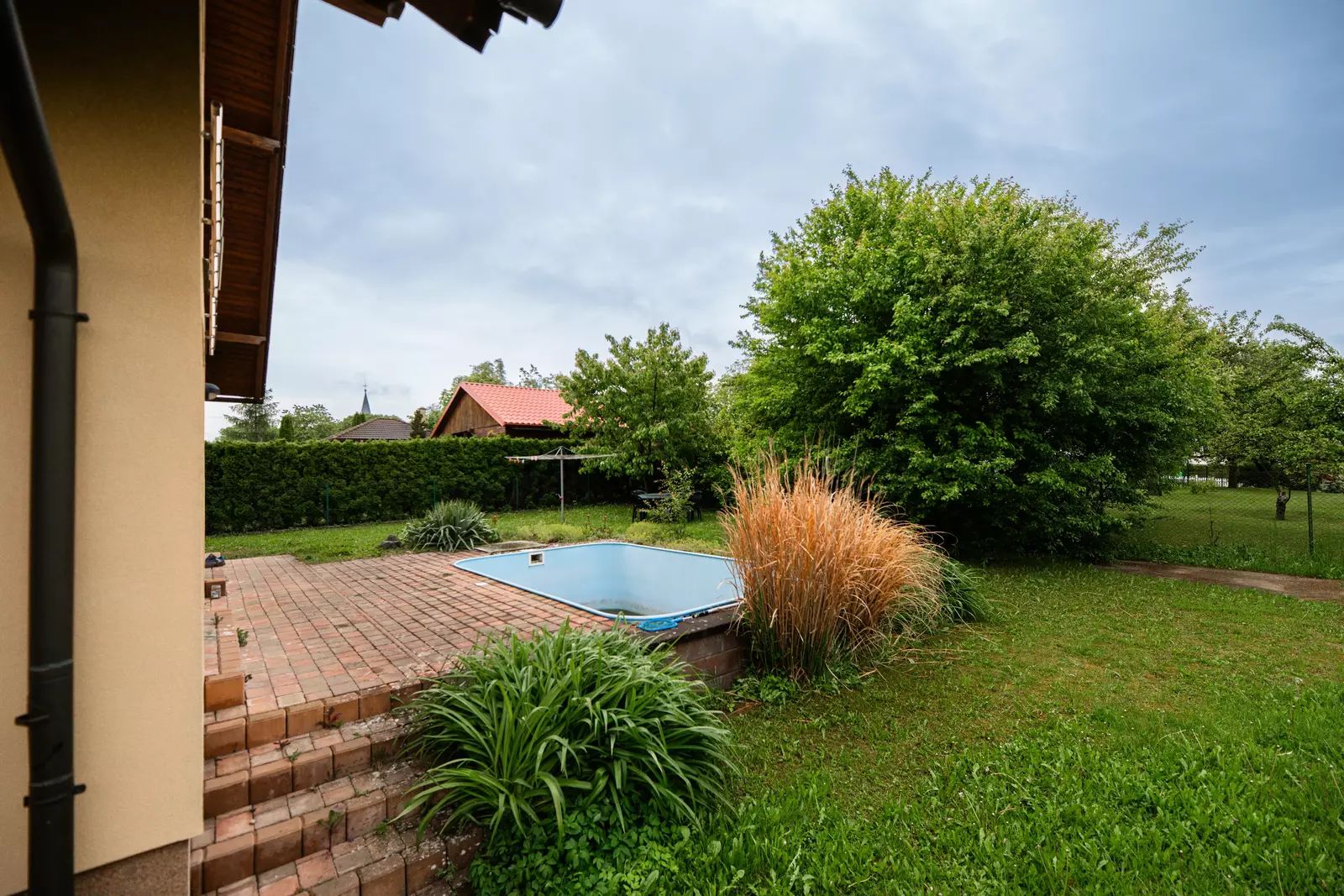 Nemovitost kolaudovaná v roce 2008 nabízí 275 m² užitné plochy, 8 neprůchozích pokojů a pozemek 756 m² se zapuštěným bazénem. Stav je velmi dobrý, dům je udržovaný a okamžitě připravený pokračovat v provozu.