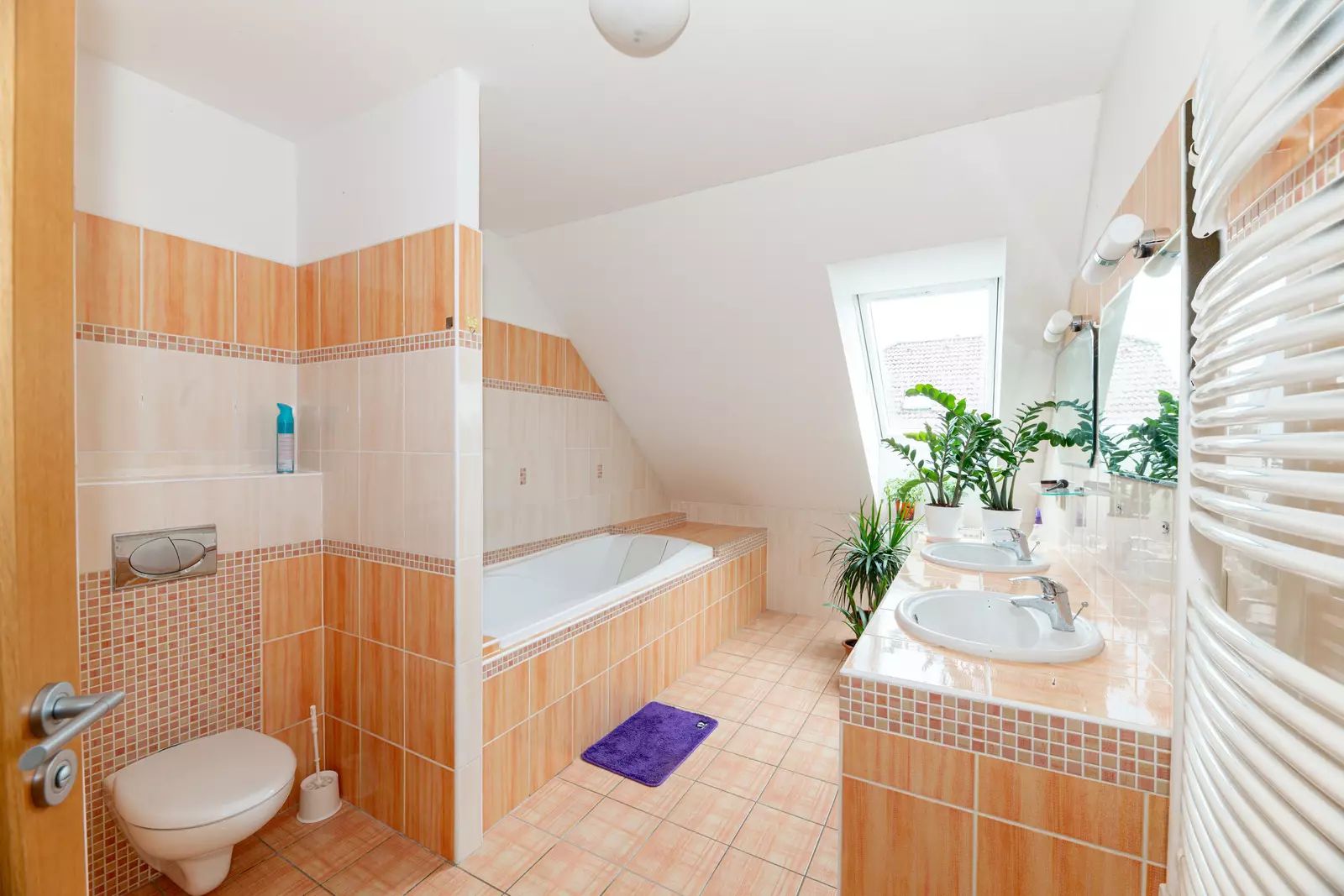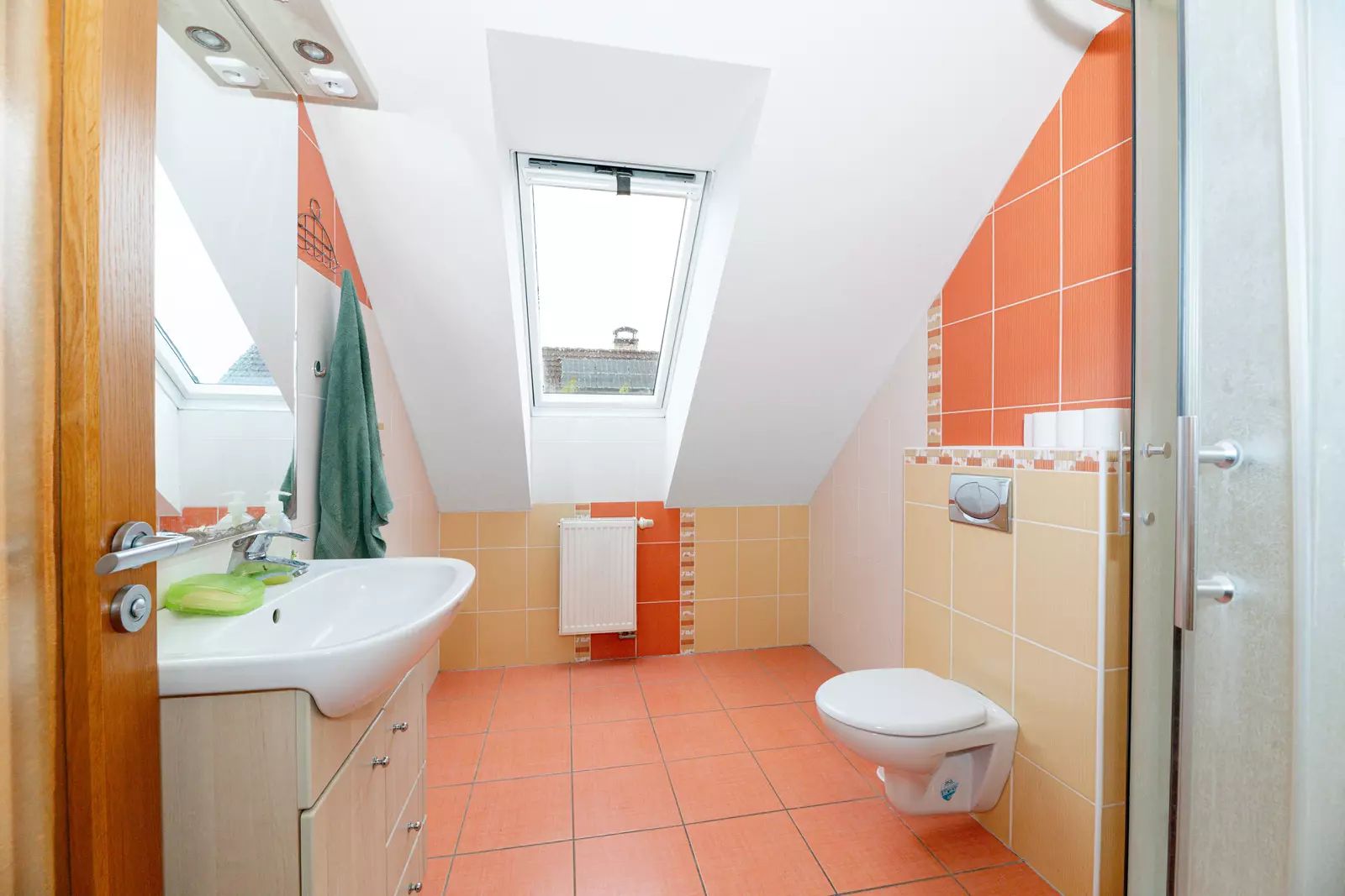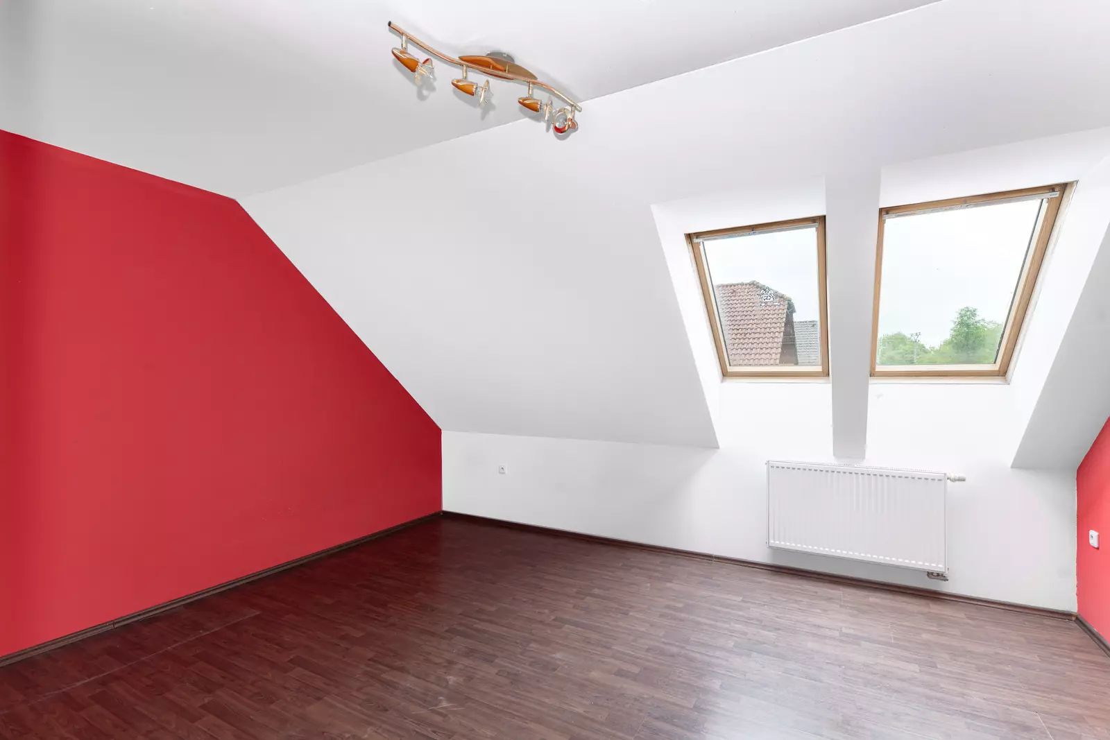 Podkroví: 6 neprůchozích pokojů, chodba, 2 koupelny.