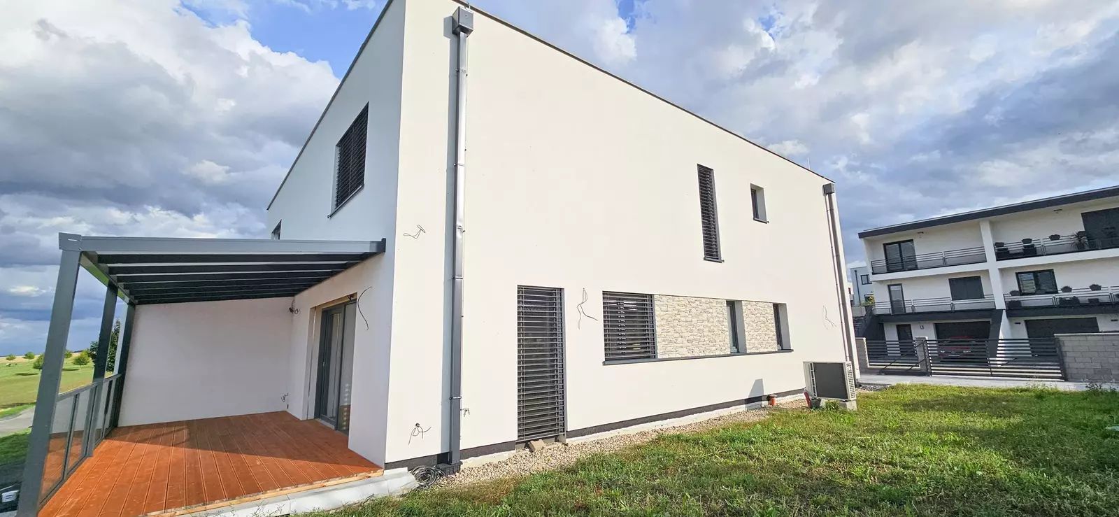 Zděný dům je postaven výhradně za pomoci kvalitních materiálů a moderních technologií. Zateplení o síle 20 cm, trojskla, podlahové vytápění s tepelným čerpadlem Panasonic, rozvody zabezpečovacího systému (včetně přípravy na kamery), elektrické předokenní žaluzie na dálkové ovládání či bezfalcové dveře včetně magnetických zámků jsou samozřejmostí. Dům je kompletně připraven na montáž fotovoltaiky.
