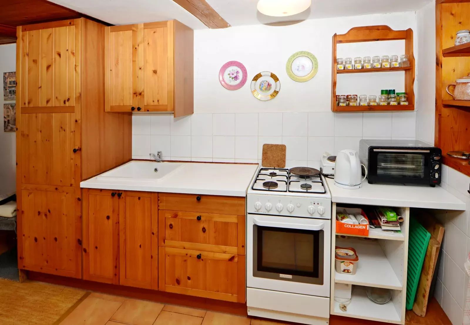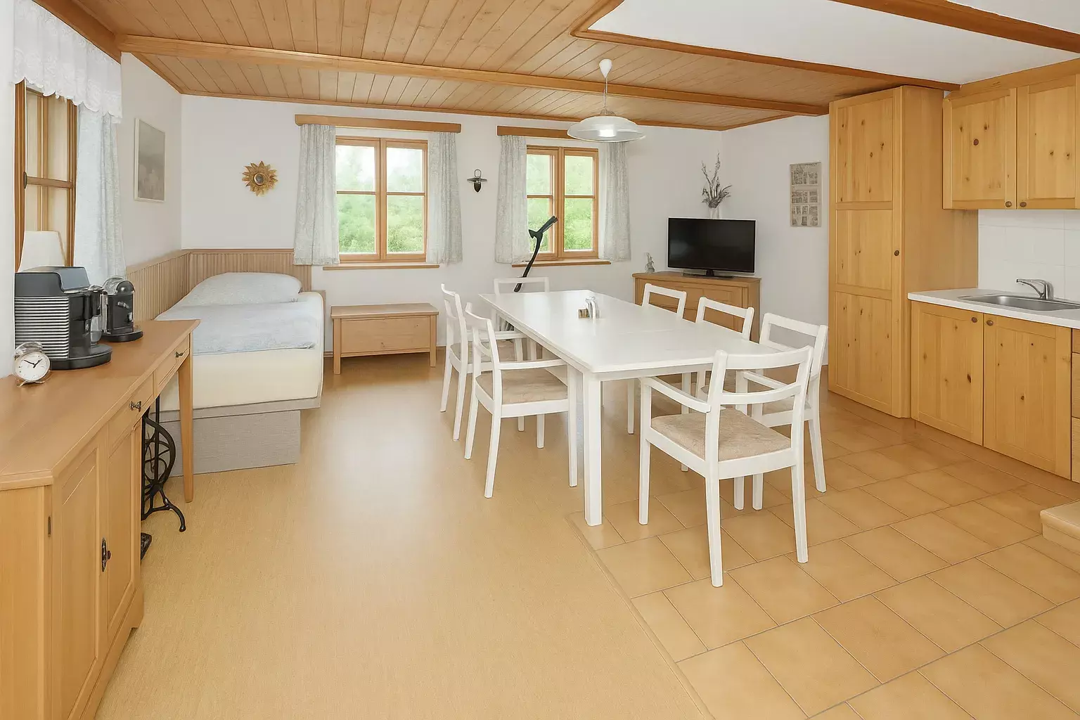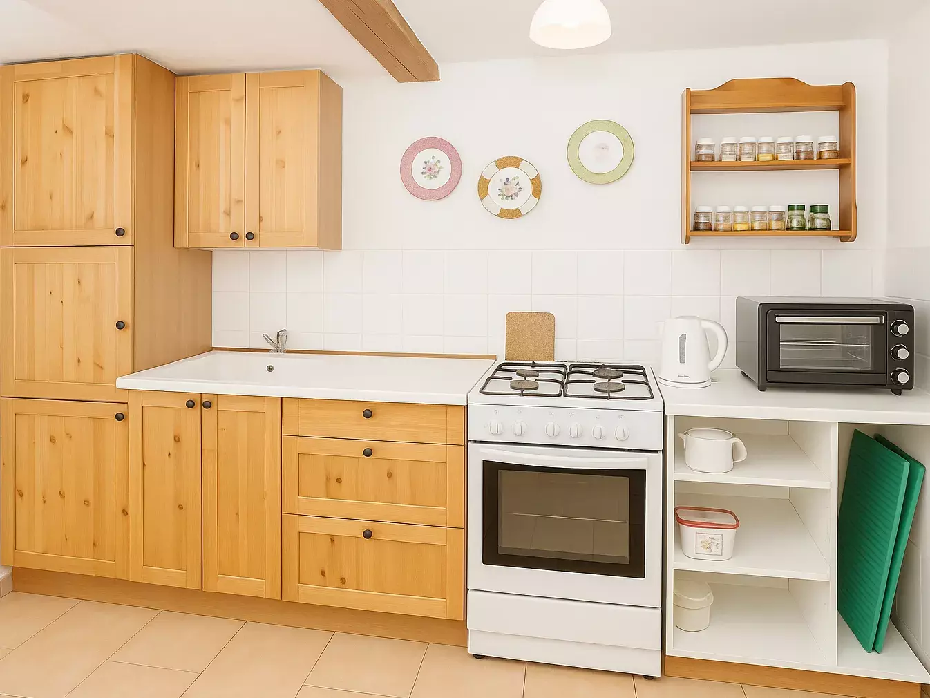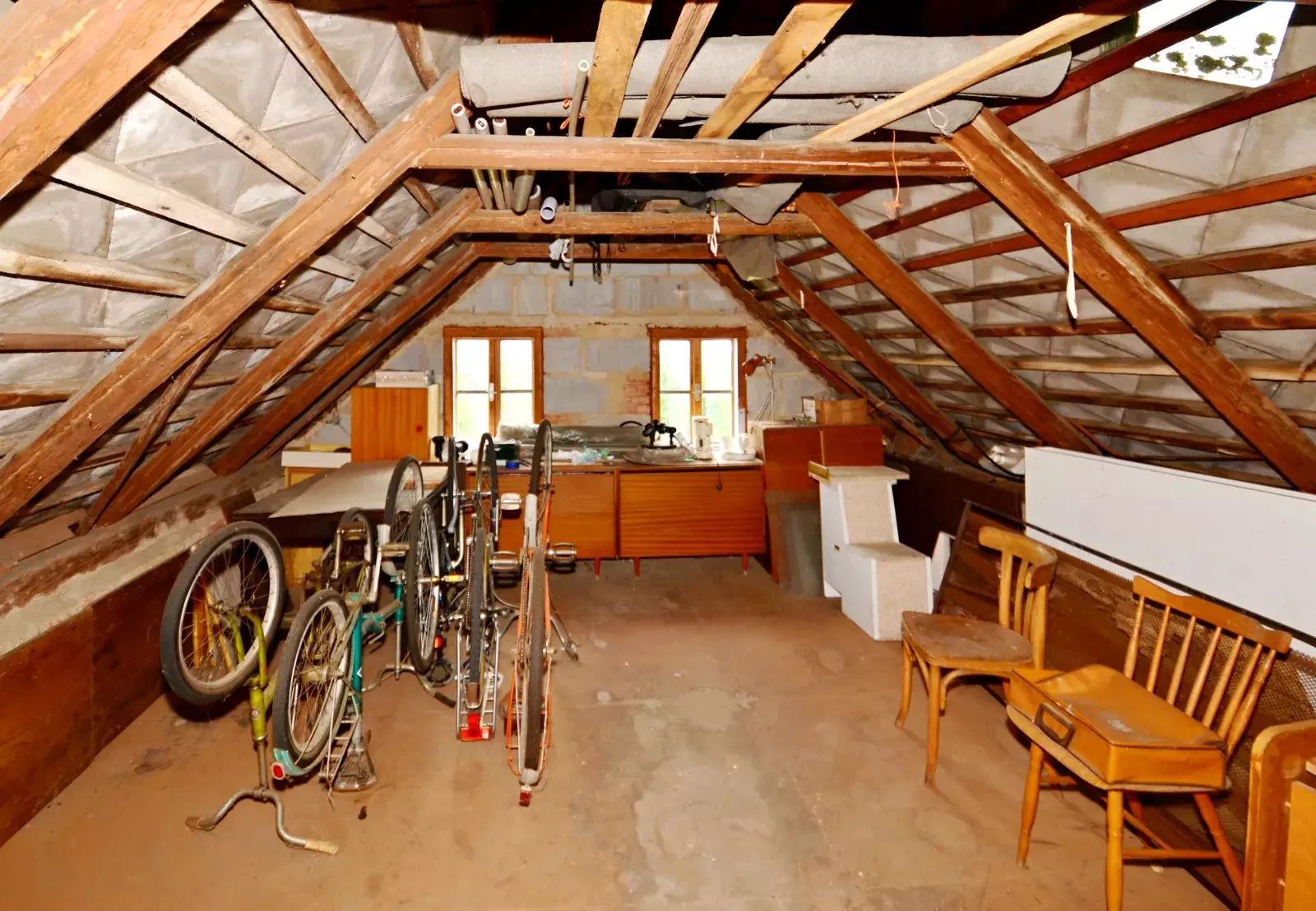 Dispozice obytné části (67,6 m²) zahrnuje obytnou kuchyň s obývacím prostorem, tři pokoje, koupelnu se sprchovým koutem a WC a prostornou chodbu. Atmosféru domu doplňuje menší sklípek (5,9 m²), ideální pro uchování potravin či vína. Na obytnou část navazuje užitková plocha (71,9 m²) – stodola, dílna, sklady a zahradní místnost, které poskytují zázemí pro kutilství, zahradničení nebo uskladnění dřeva. Velkou předností je půda, vhodná k vestavbě dalšího obytného prostoru.