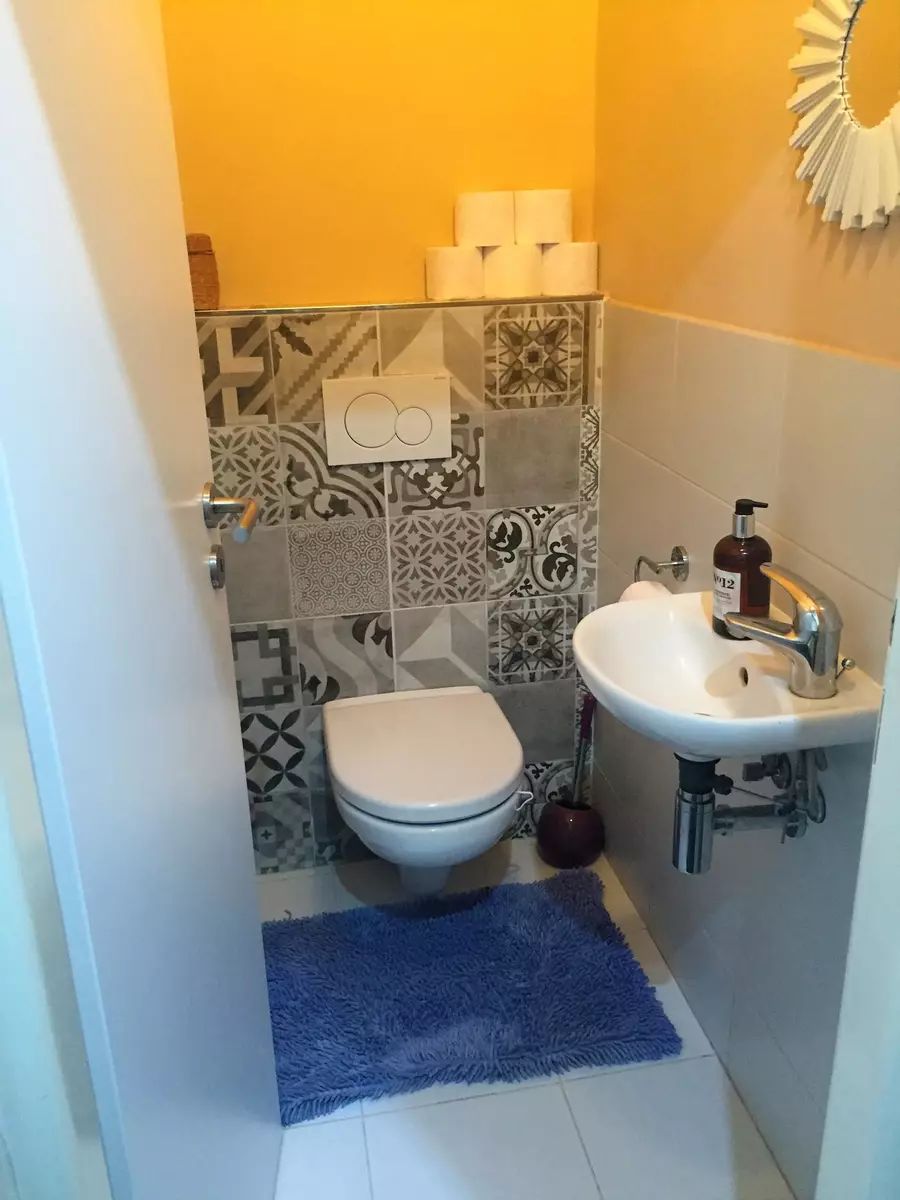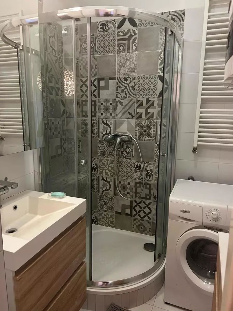 Koupelna se sprchovým koutem a pračkou je přístupná z ložnice, samostatné WC s umyvadlem se nachází u vstupu do bytu. Podlahy v obytných místnostech jsou plovoucí, v koupelně a na WC dlažba. K bytu náleží sklep o ploše 4,7 m², ideální pro uskladnění sezónních věcí.