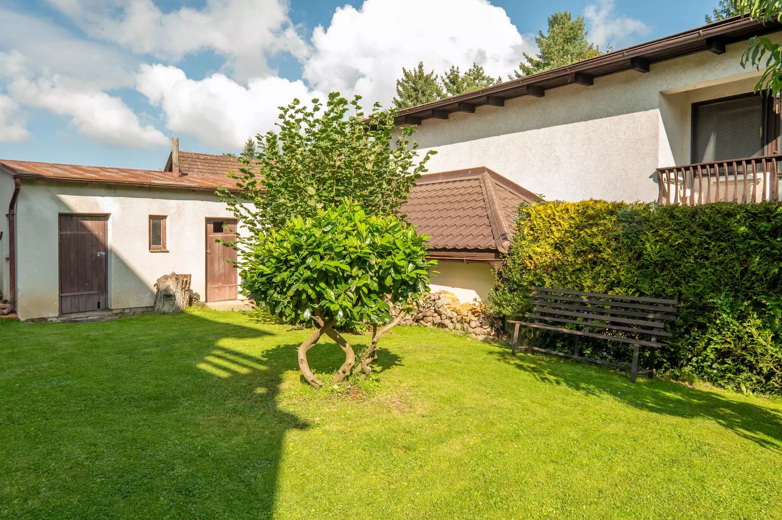 Exkluzivně nabízíme částečně zrekonstruovaný patrový podsklepený rodinný dům v širším centru Říčan, v domě jsou 2 bytové jednotky-celková plocha domu je 335 m2, pozemek má rozlohu 551m2 . Dům je připojen na veškerou infrastrukturu, ve velmi dobrém stavu. V přízemí se nachází prostorný byt 2+1 s garáží a schodištěm do patra, v patře potom světlý byt 4+1 s balkonem. Dispozičně lze zvětšit bytový prostor v přízemí o garáž, vytvořit samostatné vchody do obou bytových jednotek a případně rozdělit i zahradu. Zahrada je mírně svažitá, prosluněná a poskytuje příjemné soukromí za domem, s krásným posezením, je pečlivě udržována s citem pro vyvážení a krásnými letitými keři/stromy. V zadní části je umístěn malý zděný zahradní domek. Dům je umístěn v centru města, ale v klidné ulici s parkováním pro rezidenty, v místě je klid a dobré sousedské vztahy. Majitelé se o dům starali po generace, byl místem kde žili a na domě i zahradě to je na první pohled poznat. Zejména přízemí domu je určitě zajímavou příležitostí pro realizaci dle vlastních představ budoucích vlastníků.