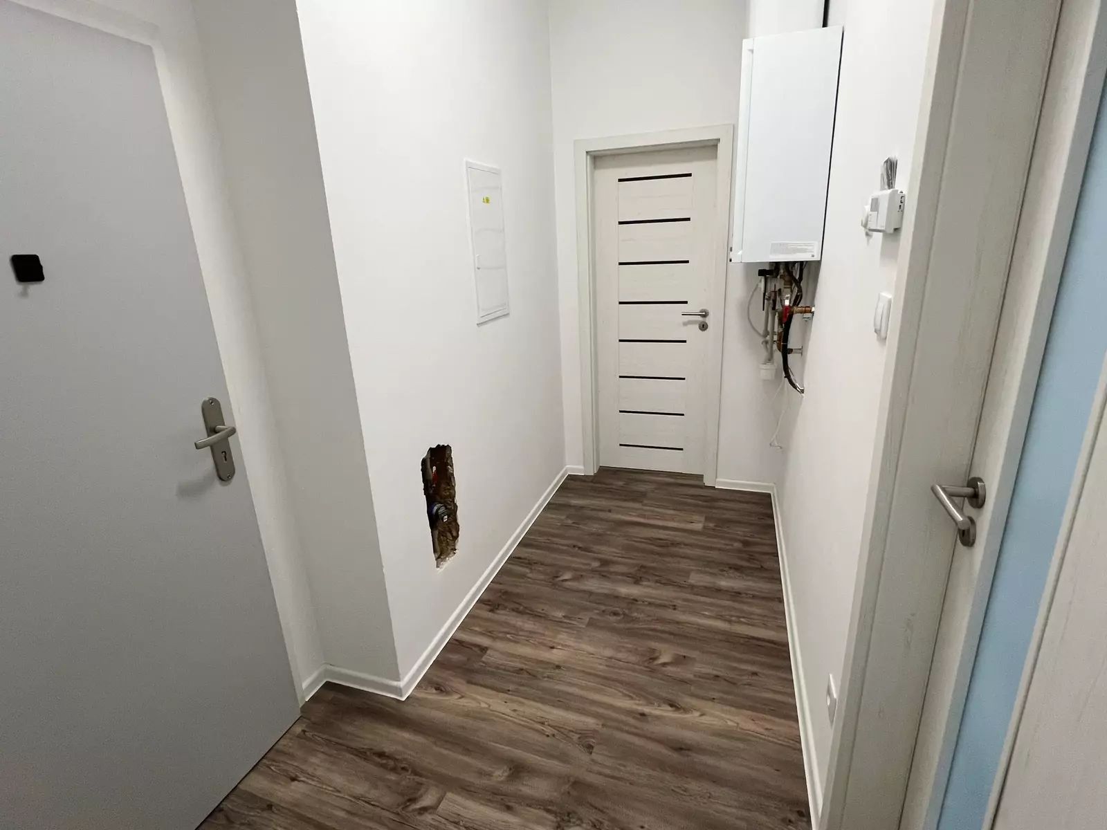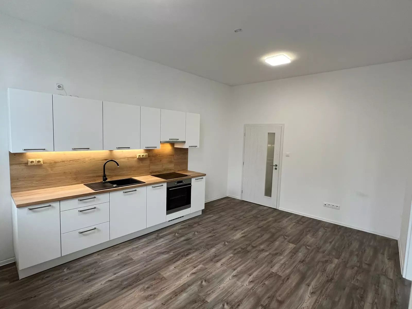 Byt tvoří vstupní chodba, koupelna s toaletou, ložnice a obývací pokoj s kuchyňským koutem. Kuchyňská linka je nová, vybavená úložnými prostory a připravena k okamžitému užívání. Díky dobře řešené dispozici je prostor prakticky využitý a působí vzdušně a svěže.