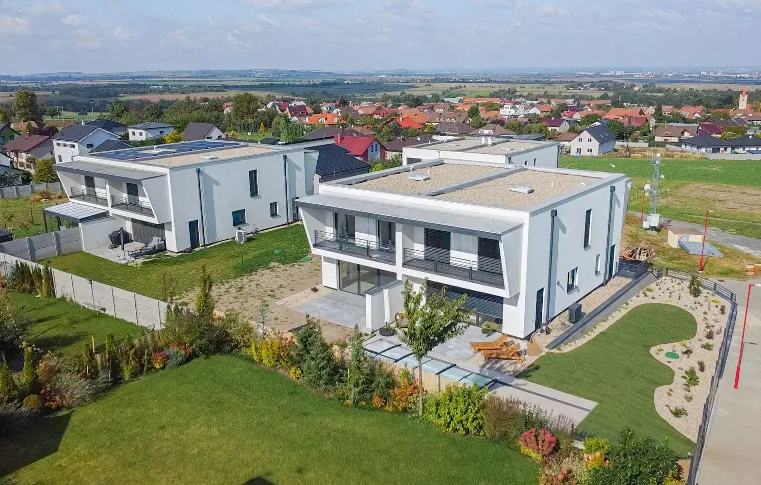 Zděný dům je postaven výhradně za pomoci kvalitních materiálů a moderních technologií. Zateplení o síle 20 cm, trojskla, podlahové vytápění s tepelným čerpadlem Panasonic, rozvody zabezpečovacího systému (včetně přípravy na kamery), elektrické předokenní žaluzie či bezfalcové dveře včetně magnetických zámků jsou samozřejmostí. Dům je kompletně připraven na montáž fotovoltaiky.