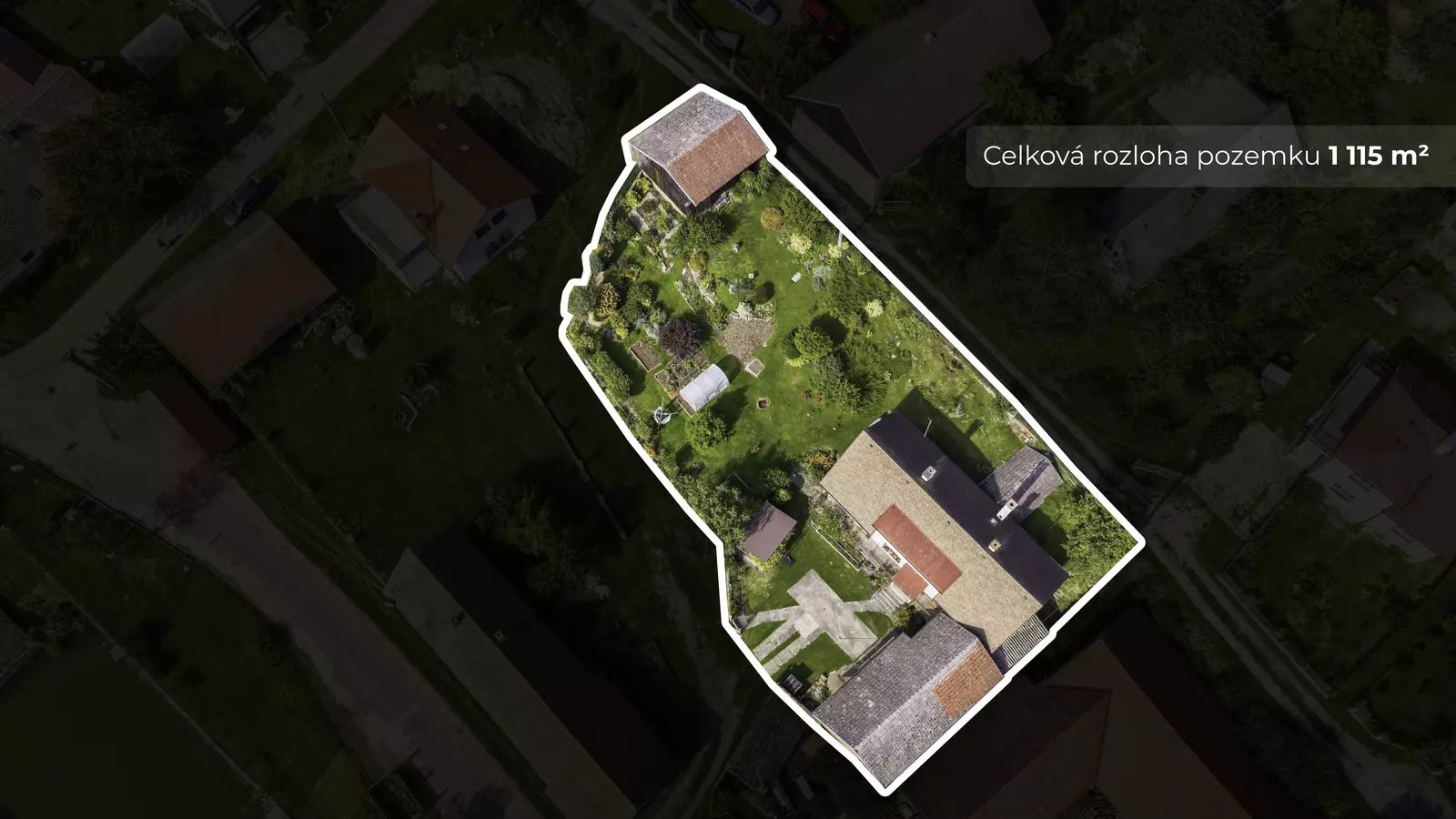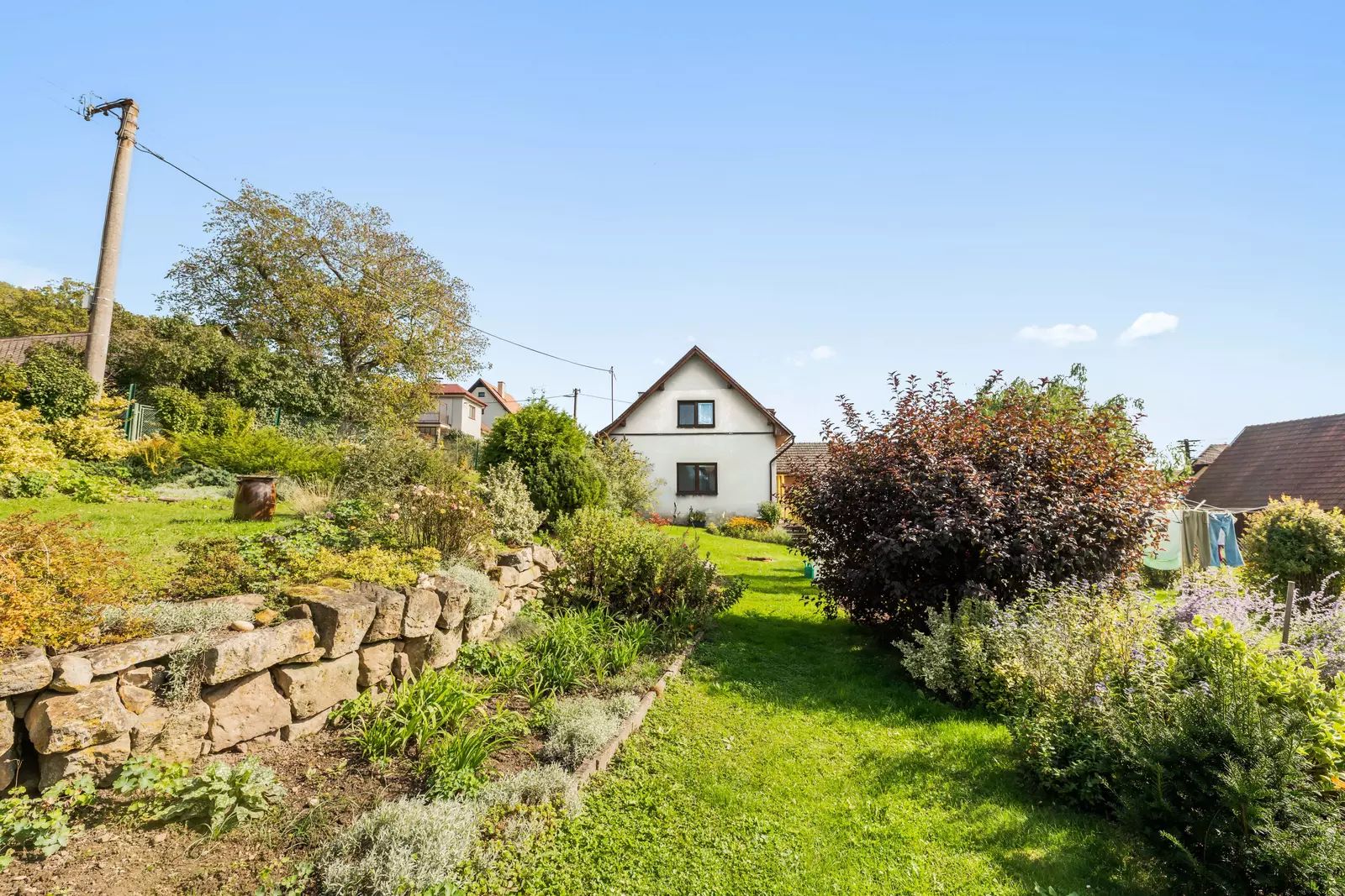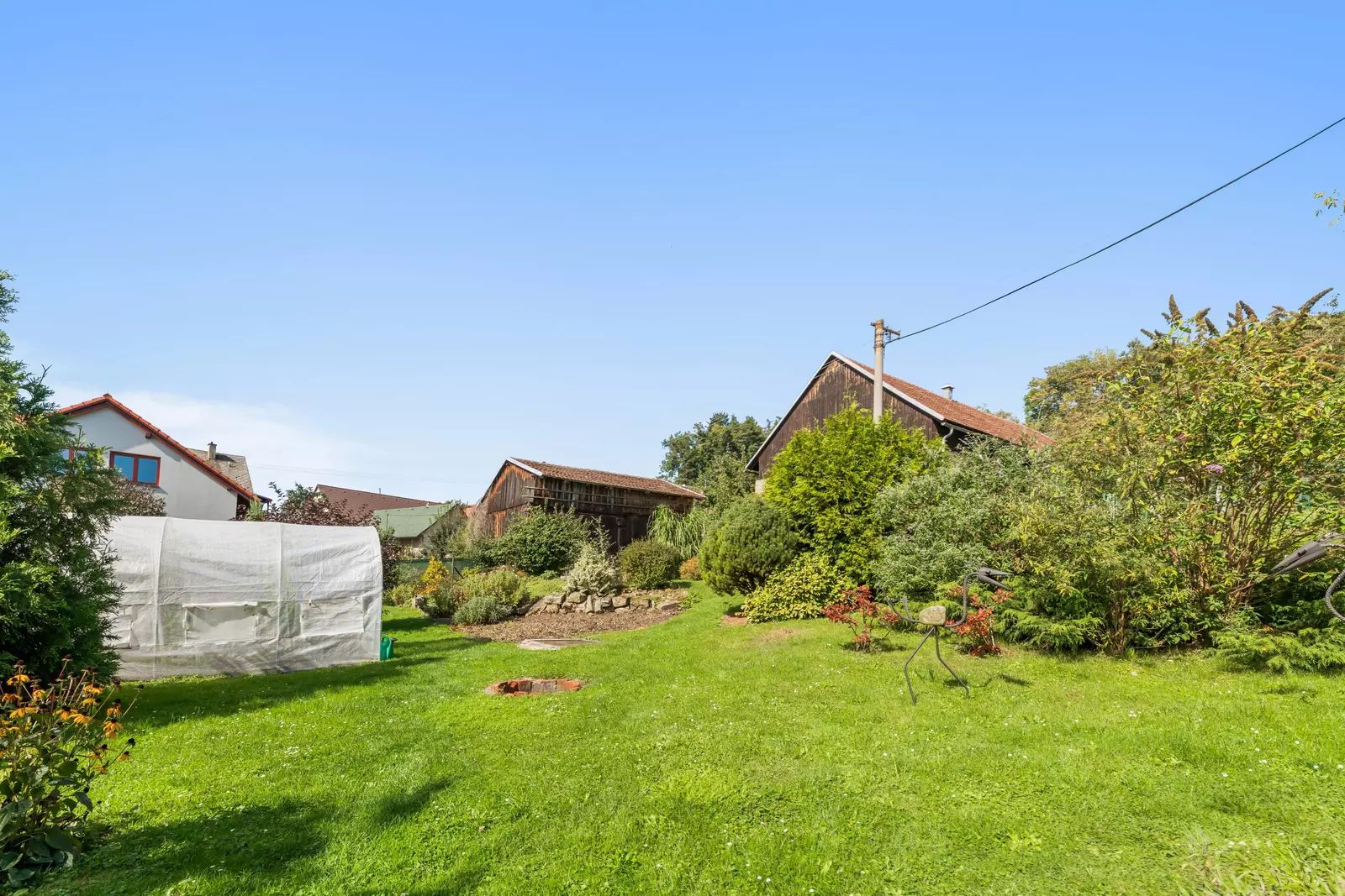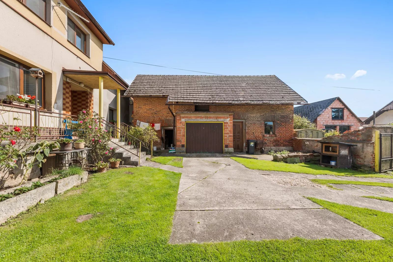 Dominantou domu je krásná udržovaná oplocená zahrada na níž stojí dřevěná kůlna a cihlová stavba (přídomek) ve velmi dobrém stavu s prostory bývalých chlévů a oddělená garáž na jeden OA. Na zahradě v zemi je nádrž o velikosti 1000l na dešťovou vodu.