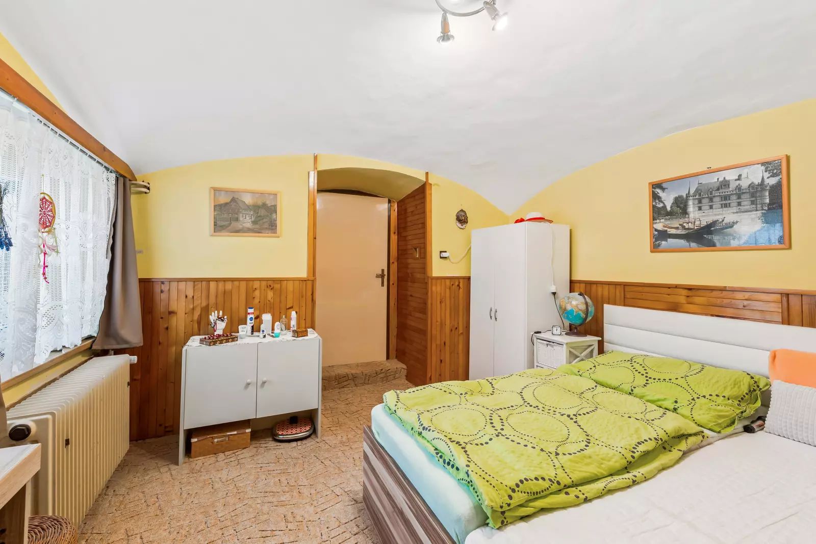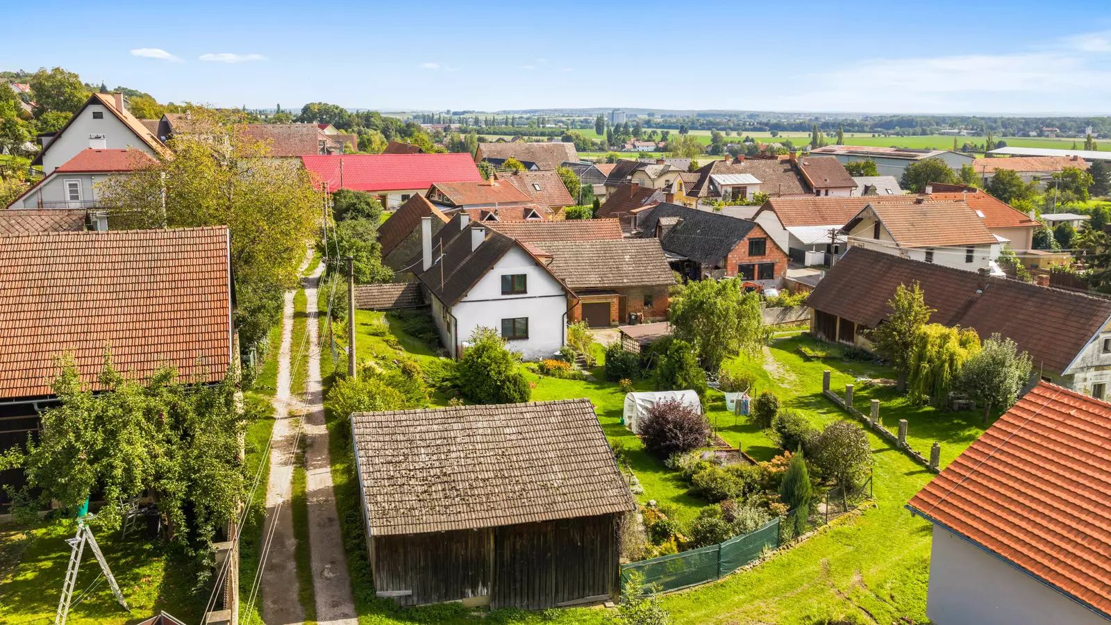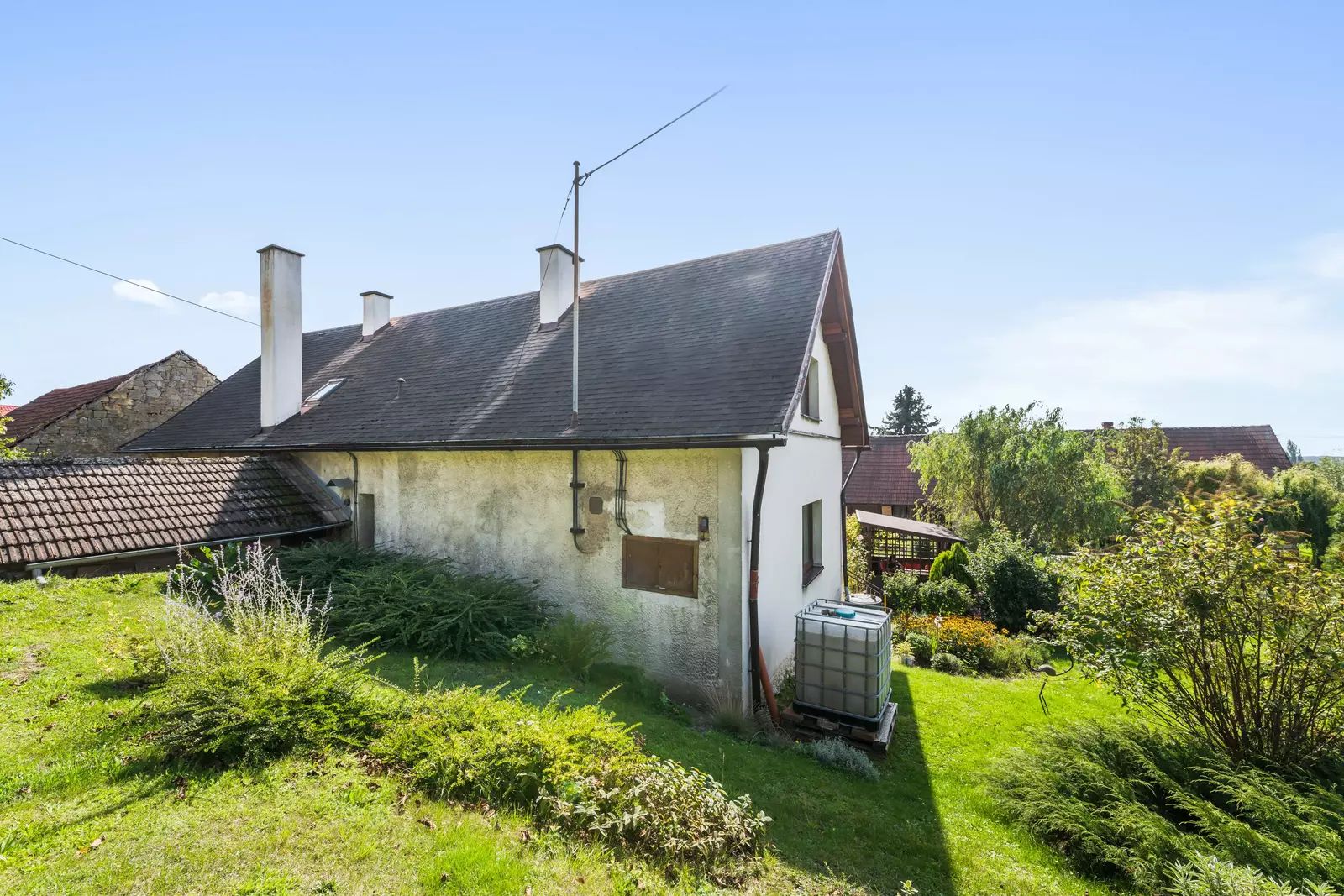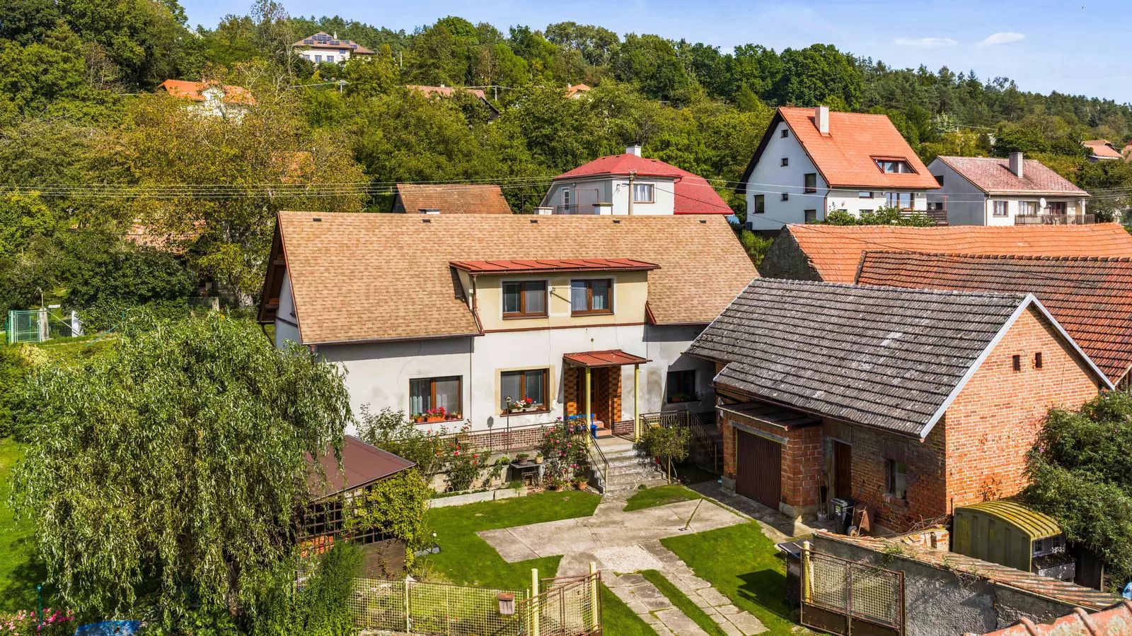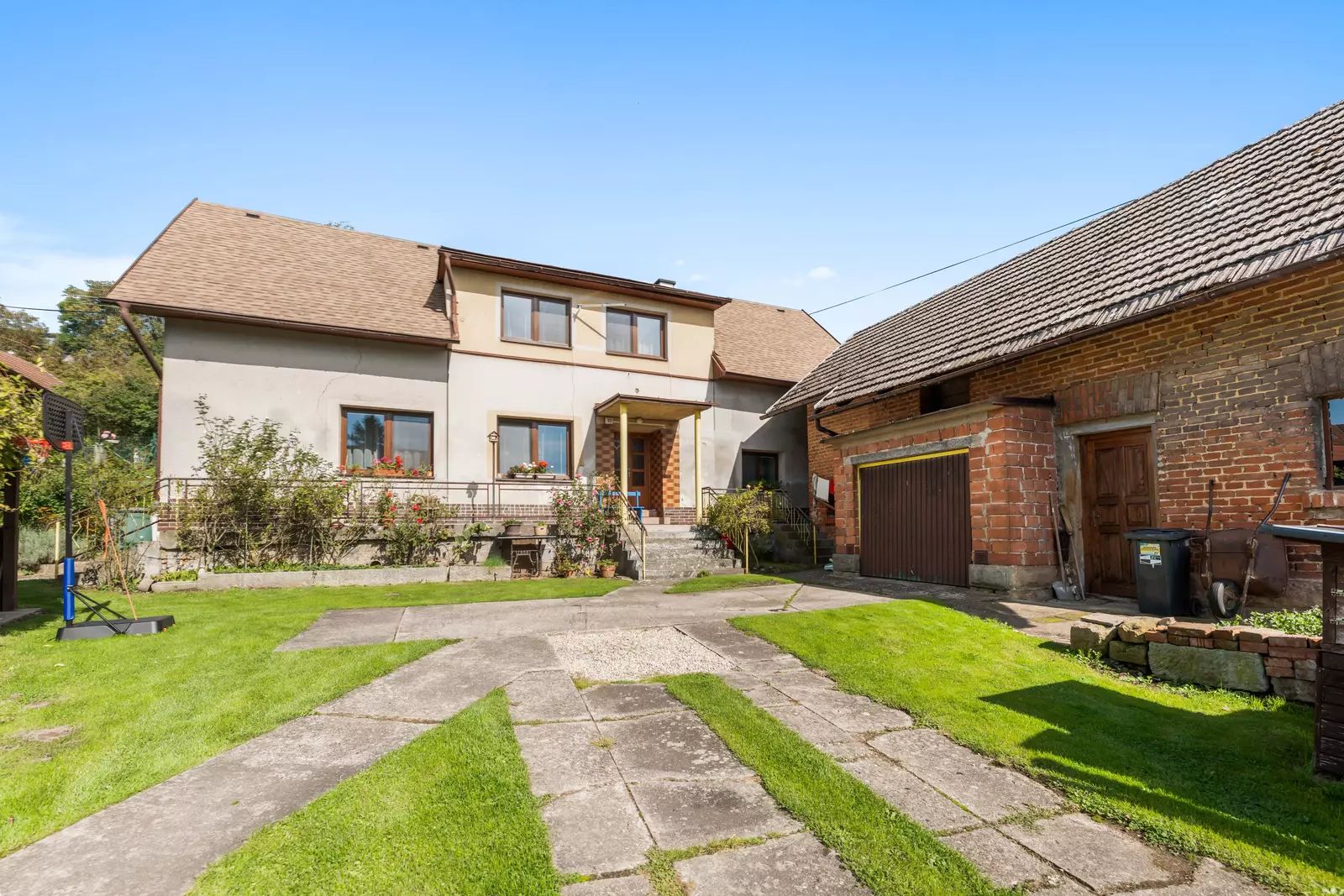 Dominantou domu je krásná udržovaná oplocená zahrada na níž stojí dřevěná kůlna a cihlová stavba (přídomek) ve velmi dobrém stavu s prostory bývalých chlévů a oddělená garáž na jeden OA. Na zahradě v zemi je nádrž o velikosti 1000l na dešťovou vodu.