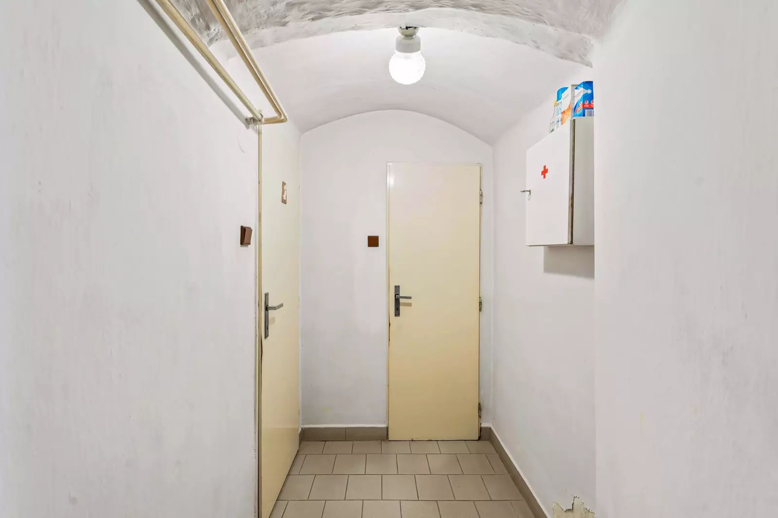 V přízemí se nachází vstupní chodba (7,7 m2) s dominantním schodištěm, kuchyně s jídelnou (12,7 m2) průchozí do obývacího pokoje (23,2 m2), koupelna (4,2 m2), ložnice (13,1 m2), samostatná toaleta, spíž (3,05 m2) a veliký sklep s klenutými stropy (16,4 m2).