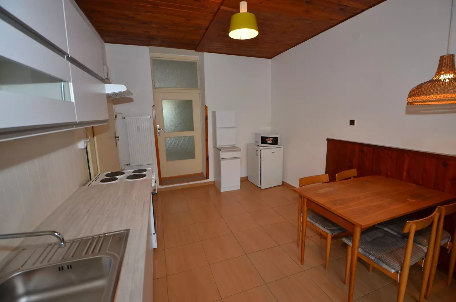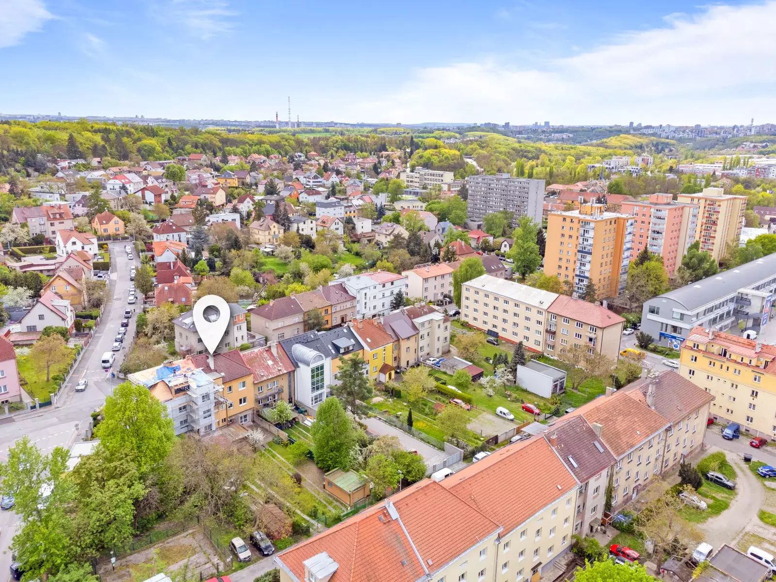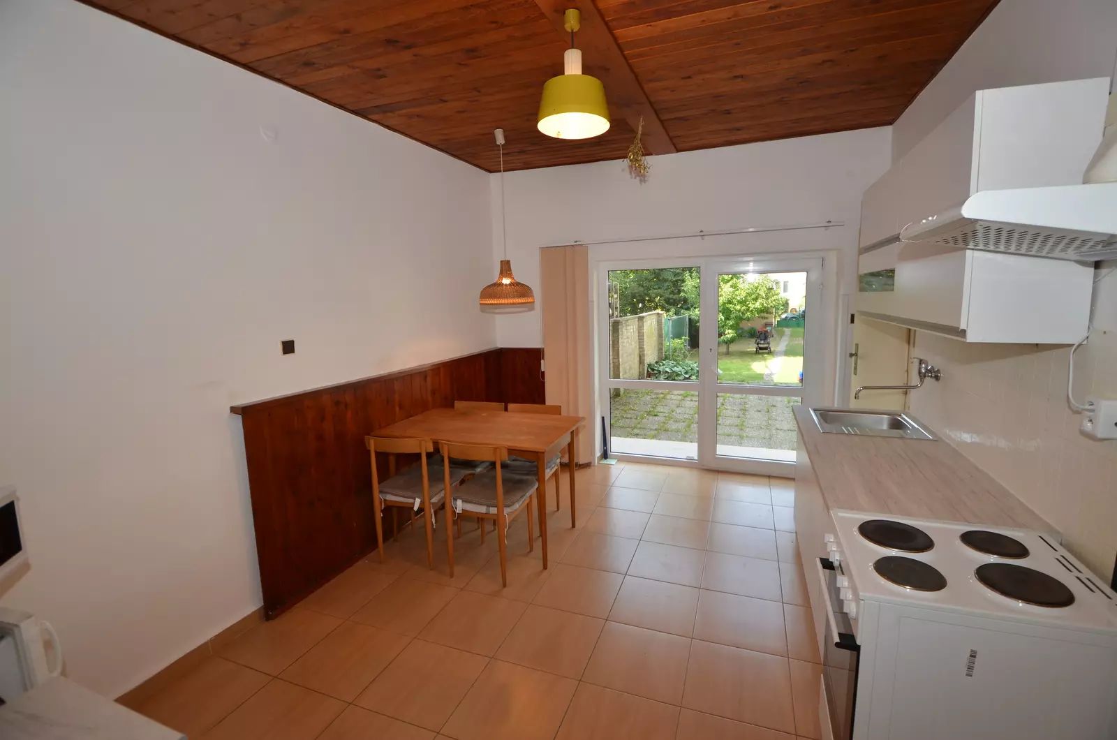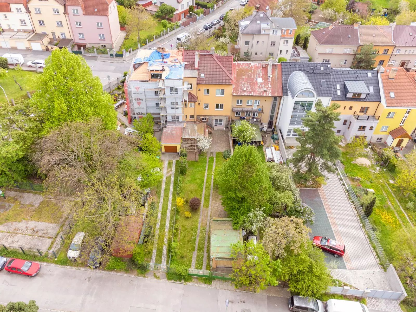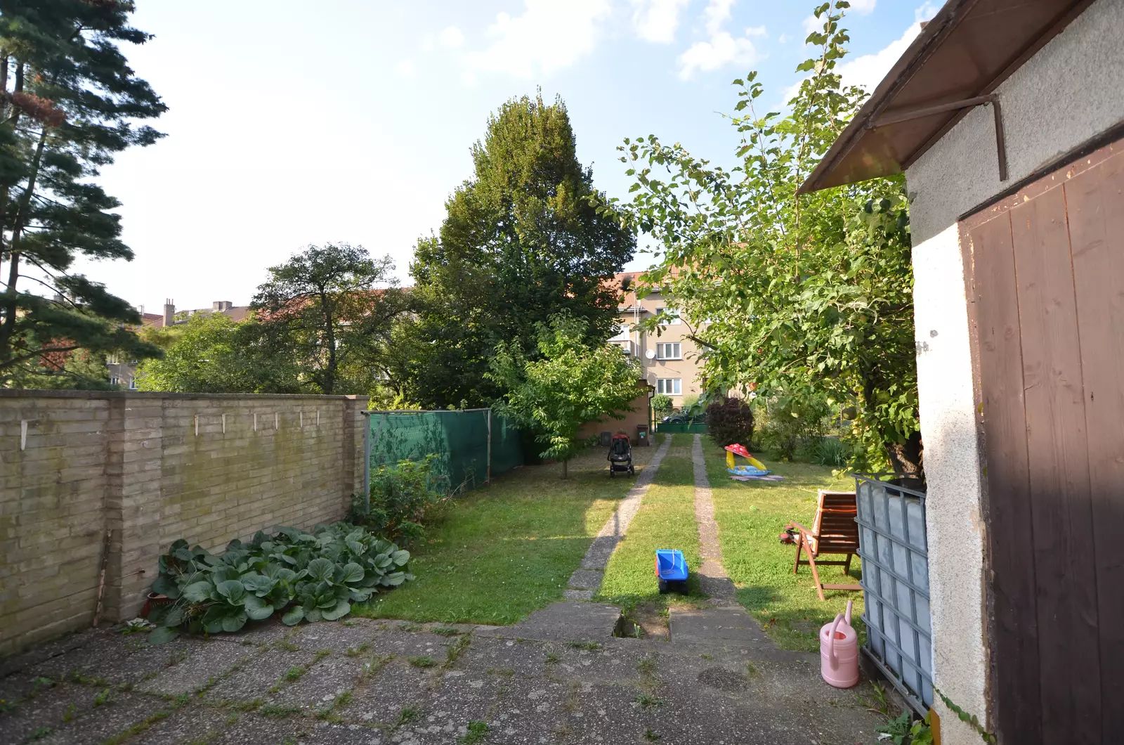 Nabízíme příjemný mezonetový byt dispozice 4+1, plocha 104m2. Byt se nachází v menším řadovém domě, kde jsou pouze tři vymezené bytové jednotky, společné prostory a schodiště. Tato nabídka zahrnuje prodej dvou jednotek (2+1 plocha 54,4m2 a 2+kk 49,6m2, které jsou momentálně samostatně pronajaté, avšak pronájem nebrání prodeji a pro případného investora nabízí také možnost zajímavé investice. Bytová jednotka může využívat dva vstupy z vnitřních prostor domu a výstup na terasu. Skládá se ze dvou podlaží, z menší předsíně, průchod do samostatné kuchyně, která je orientovaná do zahrady, vstup do prostorného na jih orientovaného obývací pokoje, který je průchozí do ložnice, do které se vchází po schodišti, historicky došlo k oddělení dvou bytů zaslepením dveří mezi dvěma pokoji, ale tuto dispozici lze opět otevřít. Aktuálně má byt dvě kuchyňské linky, dva sprchové kouty, dvě toalety a nabízí skvělé možnosti na případnou rekonstrukci. Na podlahách dřevěné podlahy, plovoucí podlaha, dlažba, plastová okna, centrální plynové vytápění a ohřev vody. Současně s prodejem této nemovitosti se prodává také kompletní podíl na společných částech domu, půdě, sklepů, venkovního pozemku zahrady, garáže atd. Nový vlastník bude vlastnit vymezené dvě bytové jednotky, z kterých lze vybudovat byt 4+1 a bude většinovým vlastníkem podílu na společných prostorech. V místě je veškerá občasná vybavenost, obchody, ZŠ, MŠ, lékaři, restaurace, dům je v zeleni mezi původní zástavbou cihlových domů. Jedná se o skvělou lokalitu se snadnou dostupností do centra Prahy, metro B Hloubětín, obchod 250 m od domu. Z důvodu absence PENB uvádíme třídu G. Doporučujeme.