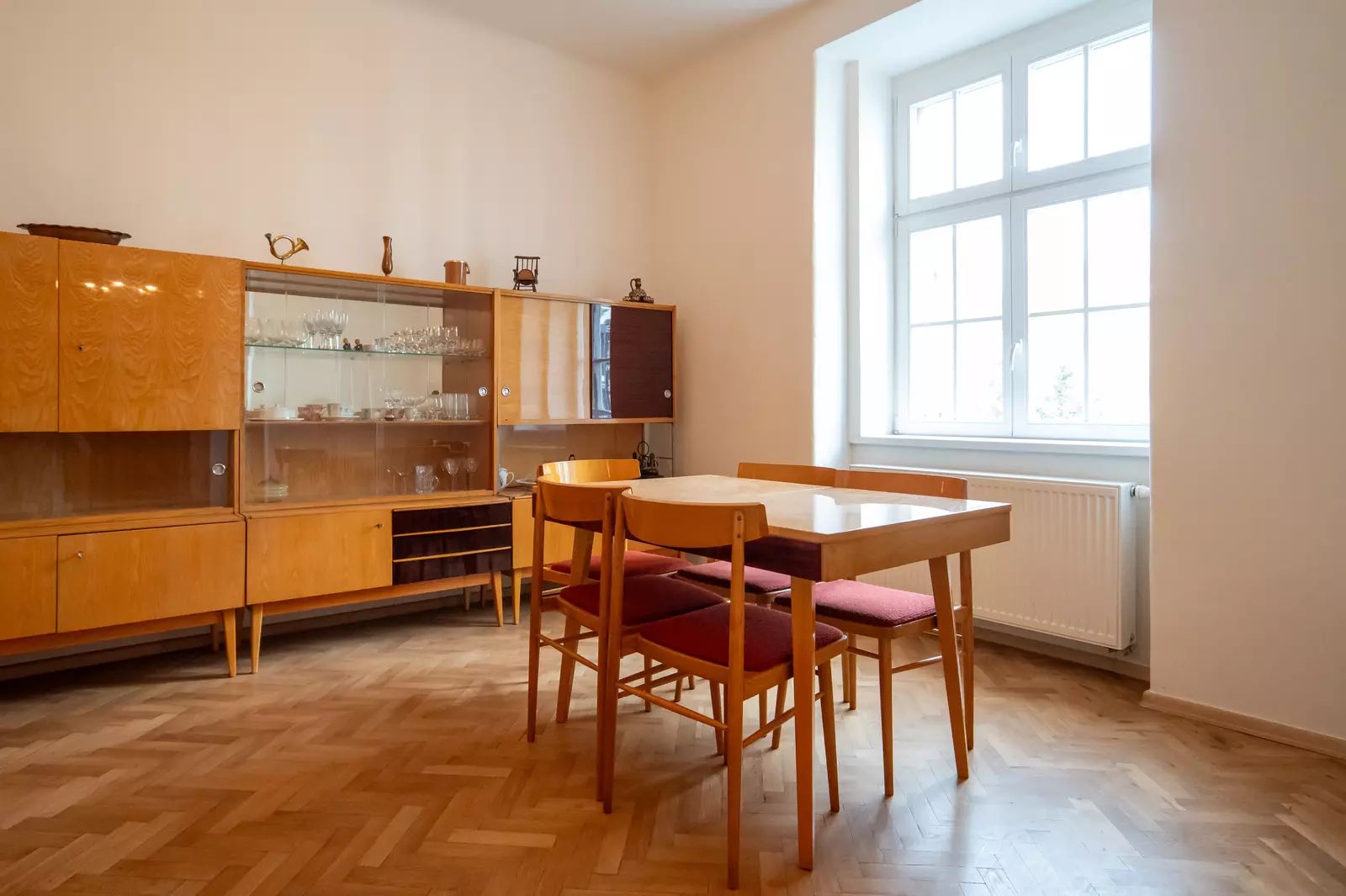 Exkluzivně nabízíme prodej světlého luxusního bytu 4+1 v prvorepublikovém domě ve Veletržní ulici, Praha 7. Nevšední byt o celkové užitné ploše 108 m², situovaný v prvním patře činžovního domu z roku 1945 prošel kompletní nákladnou rekonstrukcí před cca 5ti lety s respektováním historických prvků (dvoukřídlé dveře, dubové parkety,..)- včetně oken, dveří, obložení, podlah, vytápění včetně těles po bytě, koupelny a sanitárního vybavení. Náklady rekonstrukce byly téměř 3miliony Kč. Byt se prodává včetně vybavení-viz. foto. Koncepce bytu je ideální- z prostorné haly vcházíte do téměř všech místností (3 pokoje, koupelna, kuchyň, WC, technická, balkon)- byt by umožňoval i vícegenerační bydlení. Byt kromě prostorné haly tvoří 3 velké a 1 malý pokoj, samostatná kompletně vybavená prostorná kuchyň s moderními spotřebiči, koupelna s vanou, sprchovým koutem a novým kotlem, samostatné WC, samostatnou komoru a malý balkon. K bytu náleží i prostorný sklep. Byt má část oken do ulice a část do dvora, je perfektně větratelný a světlý. Parkování pro rezidenty Prahy 7 je umožněno v OC Stromovka za zvýhodněných podmínek.