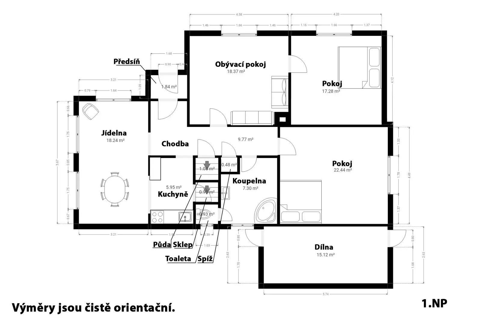 V exkluzivním zastoupení majitele nabízím k prodeji udržovaný a průběžně rekonstruovaný rodinný dům z 70. let o dispozici 4+1 s užitnou plochou 122 m². Dům je zděný (cihla, beton) a z části podsklepený (20 m²). Disponuje velkými světlými místnostmi a možností půdní vestavby.