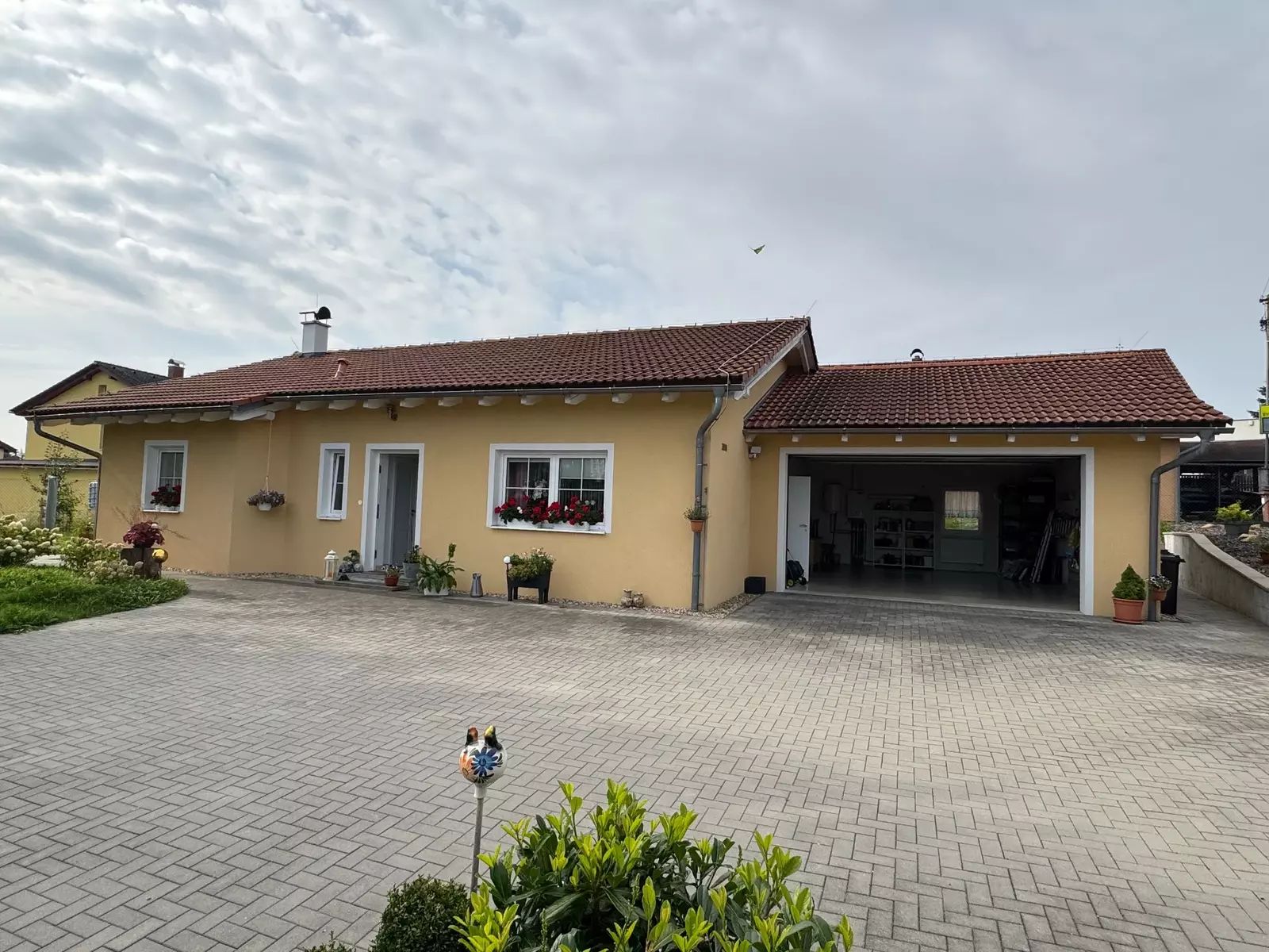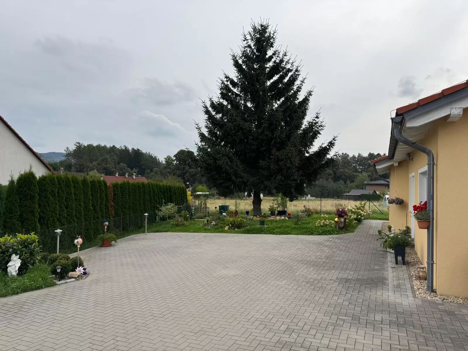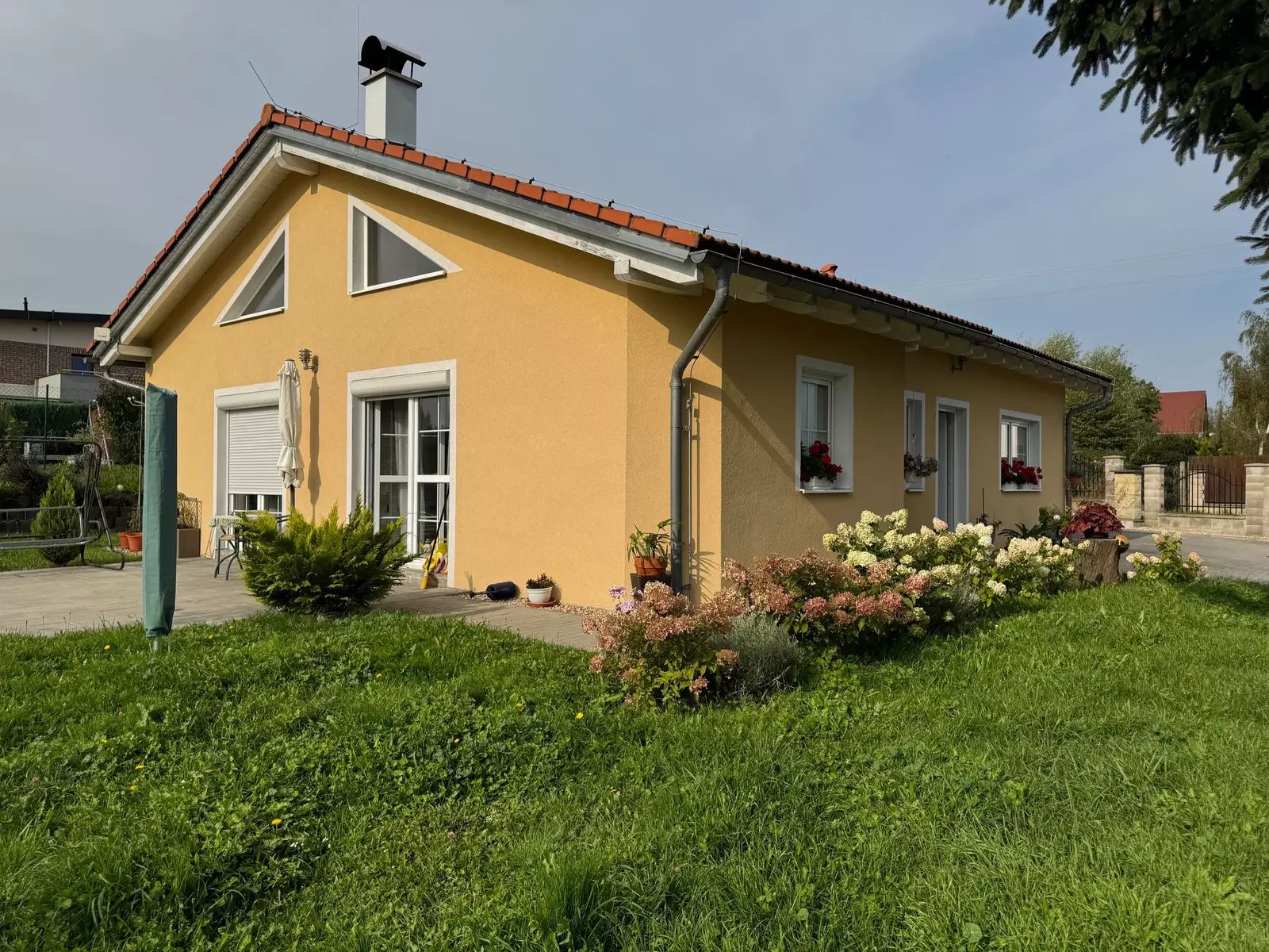Součástí domu je také terasa s výhledem na okolní zeleň, což je perfektní místo pro odpočinek s rodinou či přáteli. Velká zahrada poskytuje dostatek prostoru pro dětské hry, zahradní party a další venkovní aktivity.