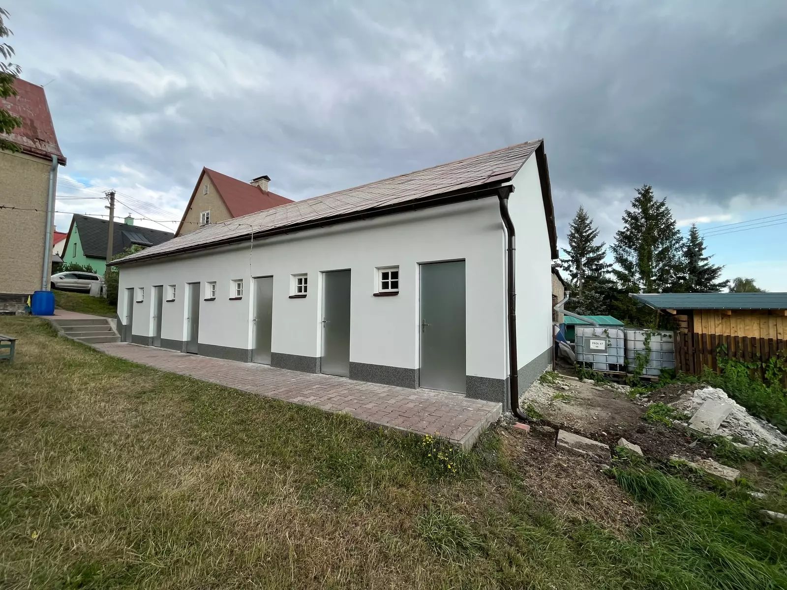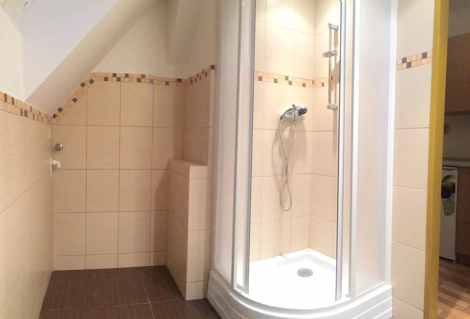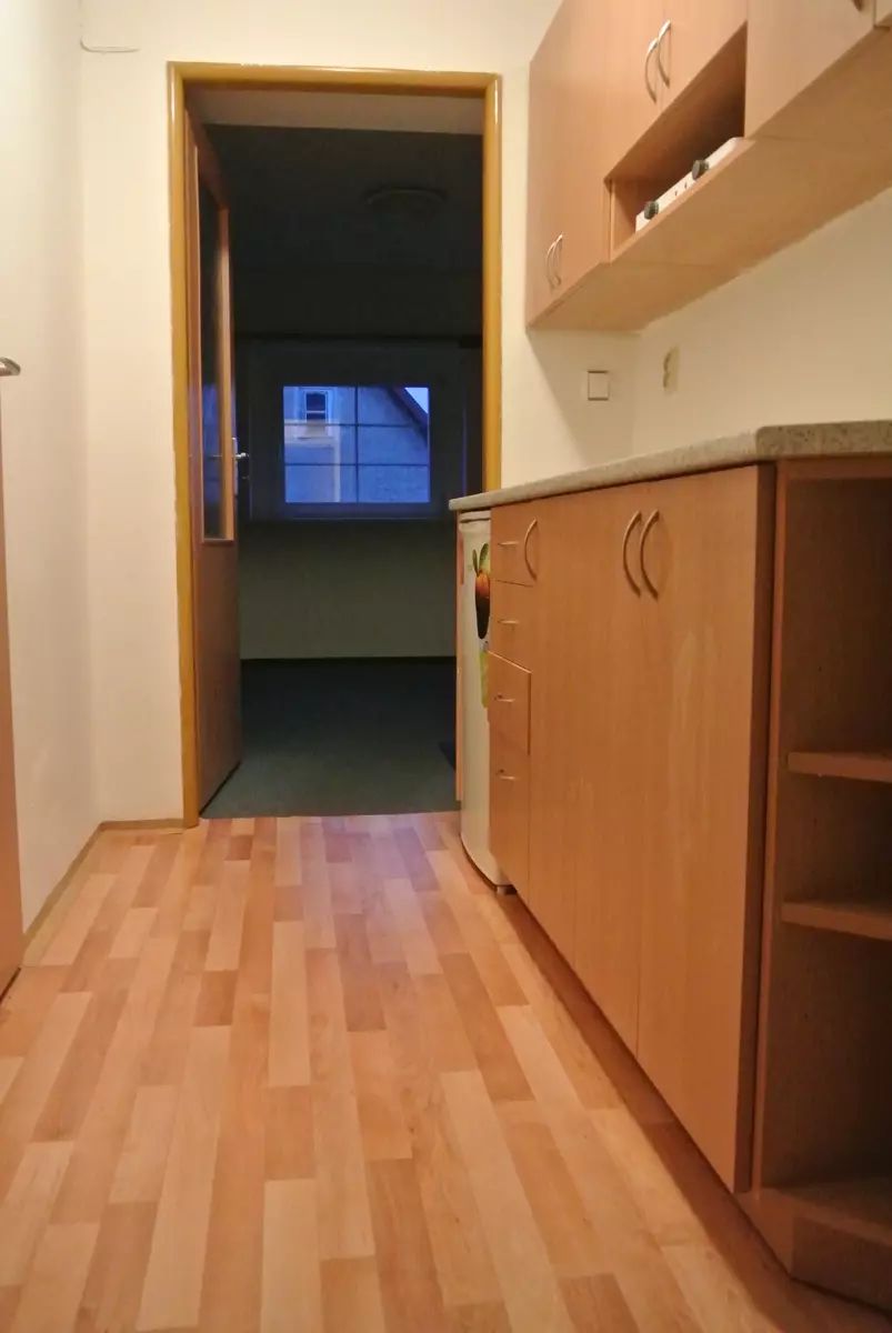 Dispozice: Koupelna se sprchovým koutem + WC, Kuchyňka a místnost.
